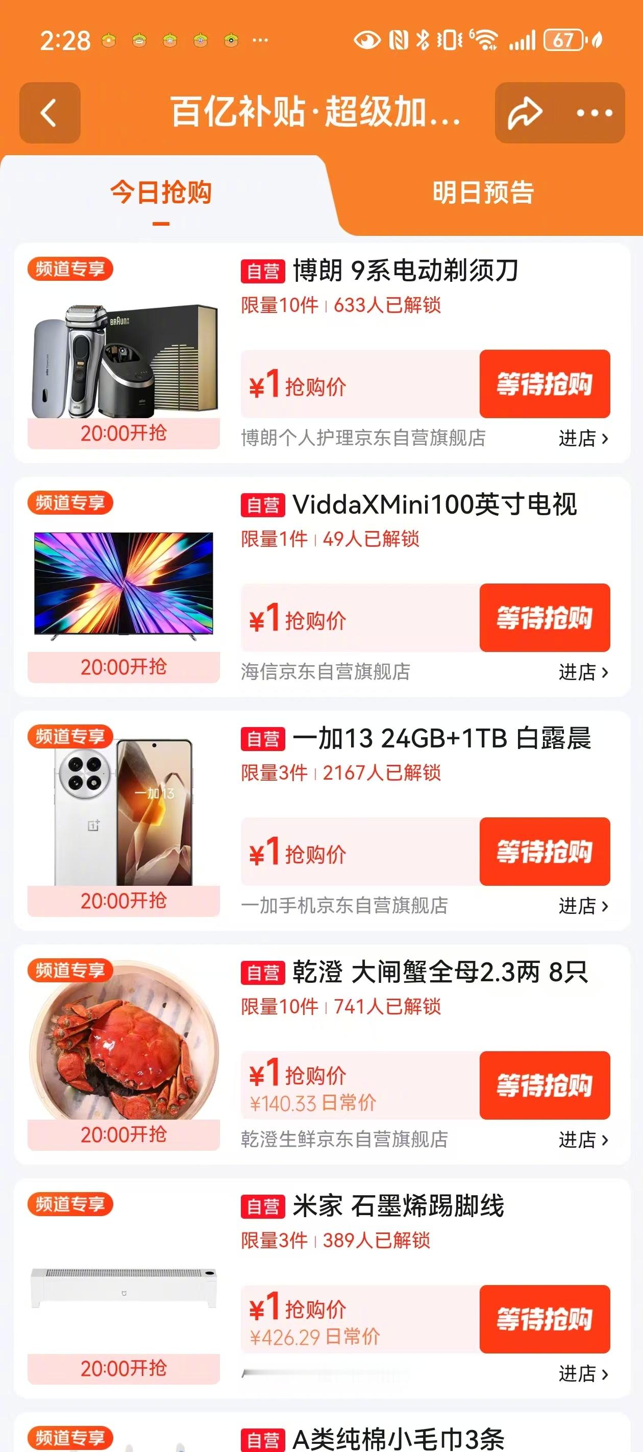 京东百亿补贴1元买手机百吋电视 今晚8点京东11.11更便宜10月20日晚8点京东百亿补贴加补!1元能抢大牌手机、百吋电视,百补叠国补至高 6 折,太香了!海信 100 吋电视看剧超爽,OPPO Find X8s 拍照绝,一加 13 打游戏流畅,还有小米、松下取暖器适配秋冬。上京东 APP 首页点【国家补贴 x 百亿补贴】→【超级加倍补】,今晚 8 点冲就对了!京东11.11 又好又便宜