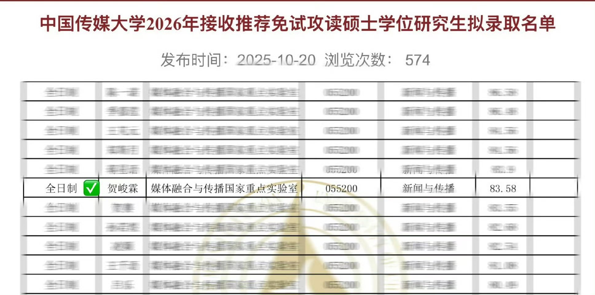 复试成绩83.58!恭喜贺峻霖成为楼里学历最高的人