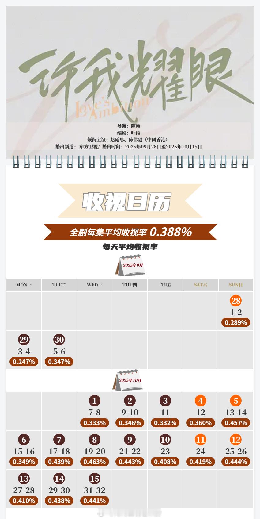 赵露思 / 陈伟霆 许我耀眼 平均收视率0.388%,最高单日0.463%