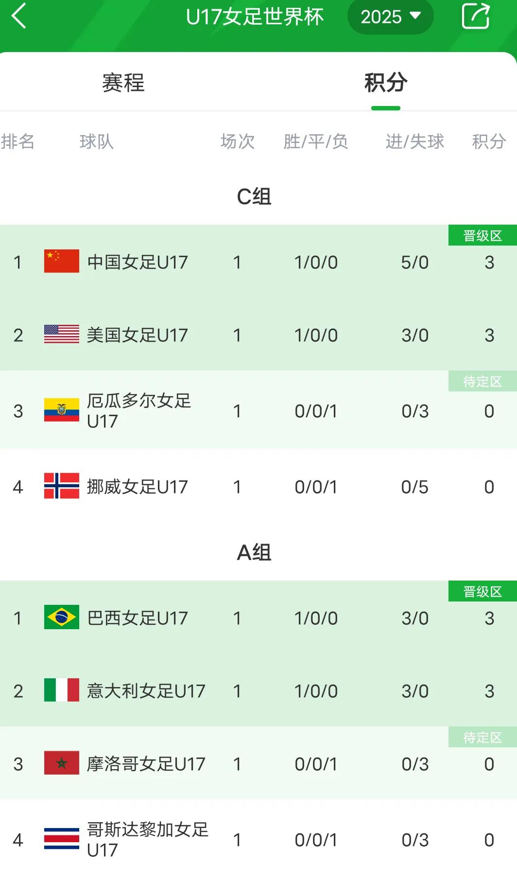 U17女足世界杯最新积分榜,下一轮中国队22日0点,面对本组最强对手美国队。