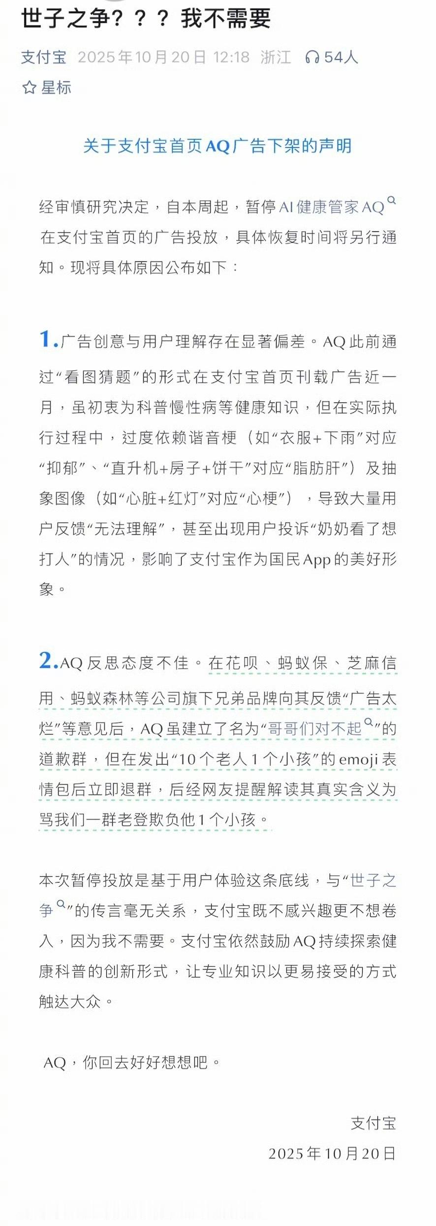 支付宝回应内斗传闻 支付宝应该不存在这个问题,越是大厂,流程审核越是规范,责任划分、产品智能也会更清晰。