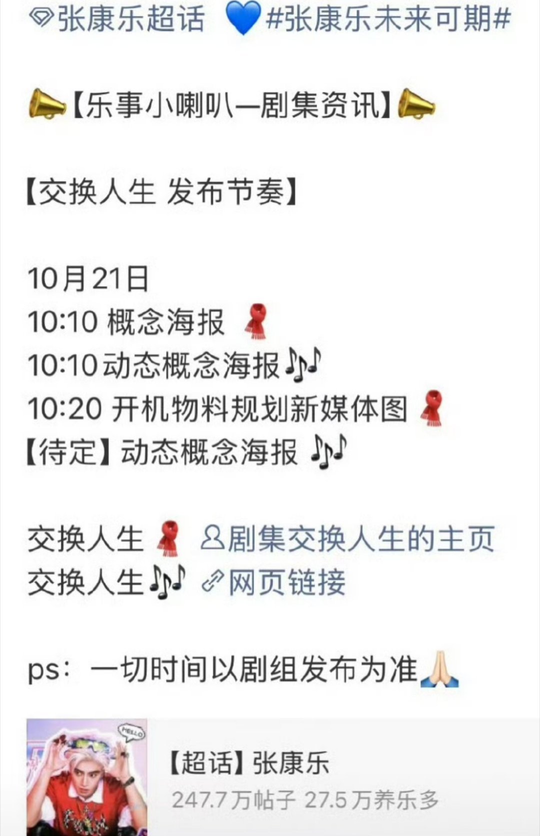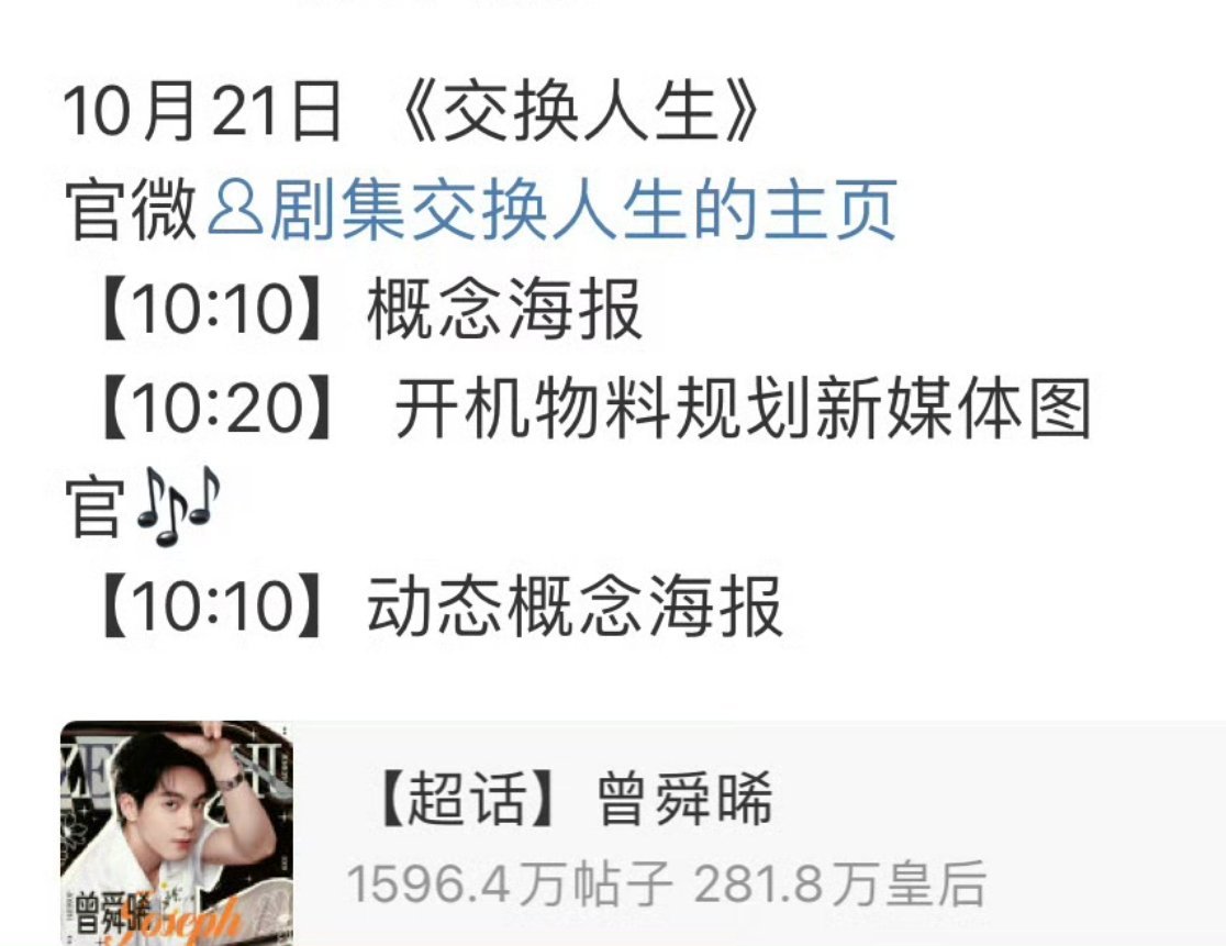 报📣📣 曾舜晞 张康乐《交换人生》明天正式官宣,官博已经有两条隐藏内容了