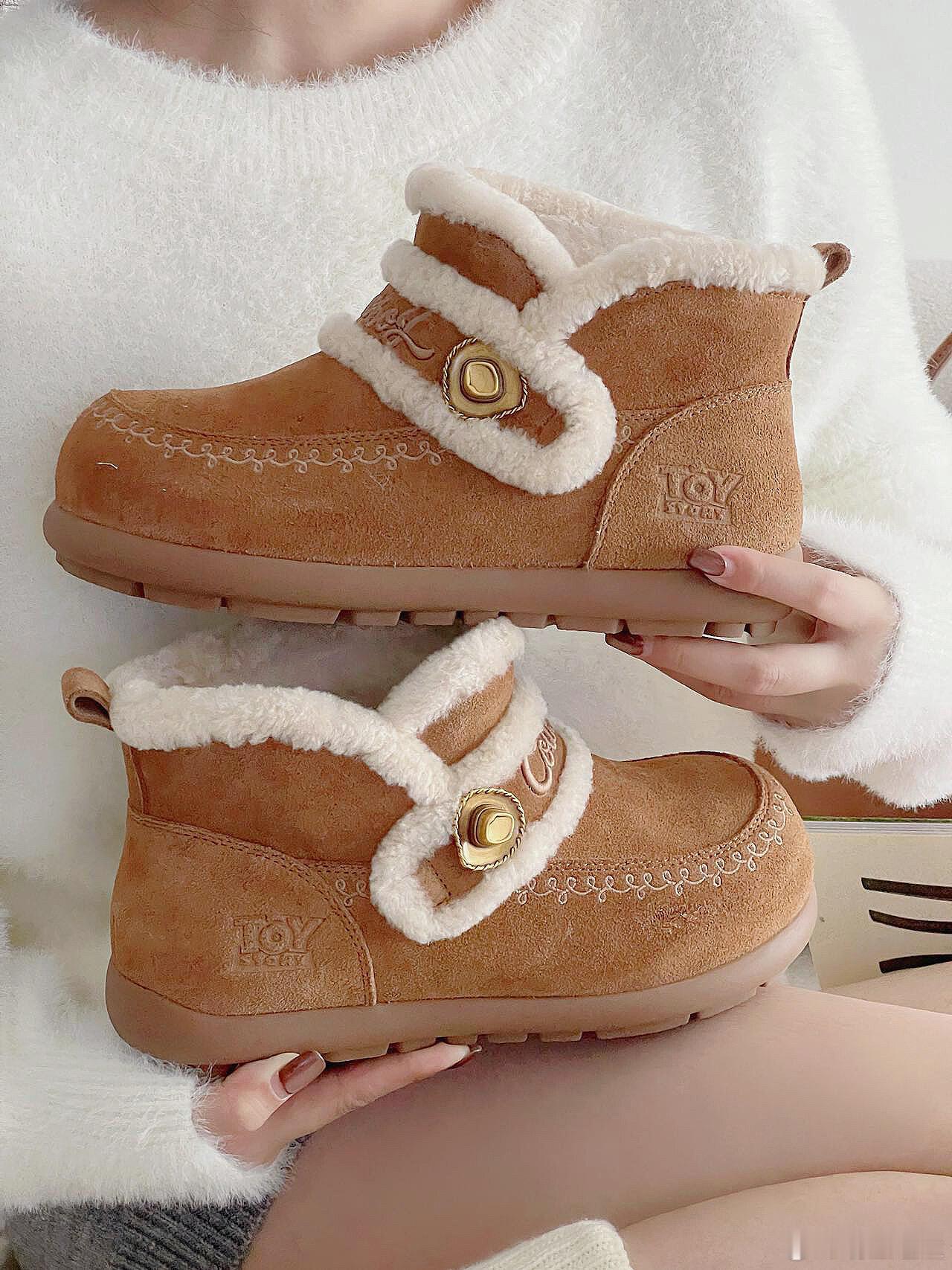 这双来自韩国品牌TOY的棕色雪地靴,采用质感细腻的麂皮材质,温暖的焦糖色搭配鞋面