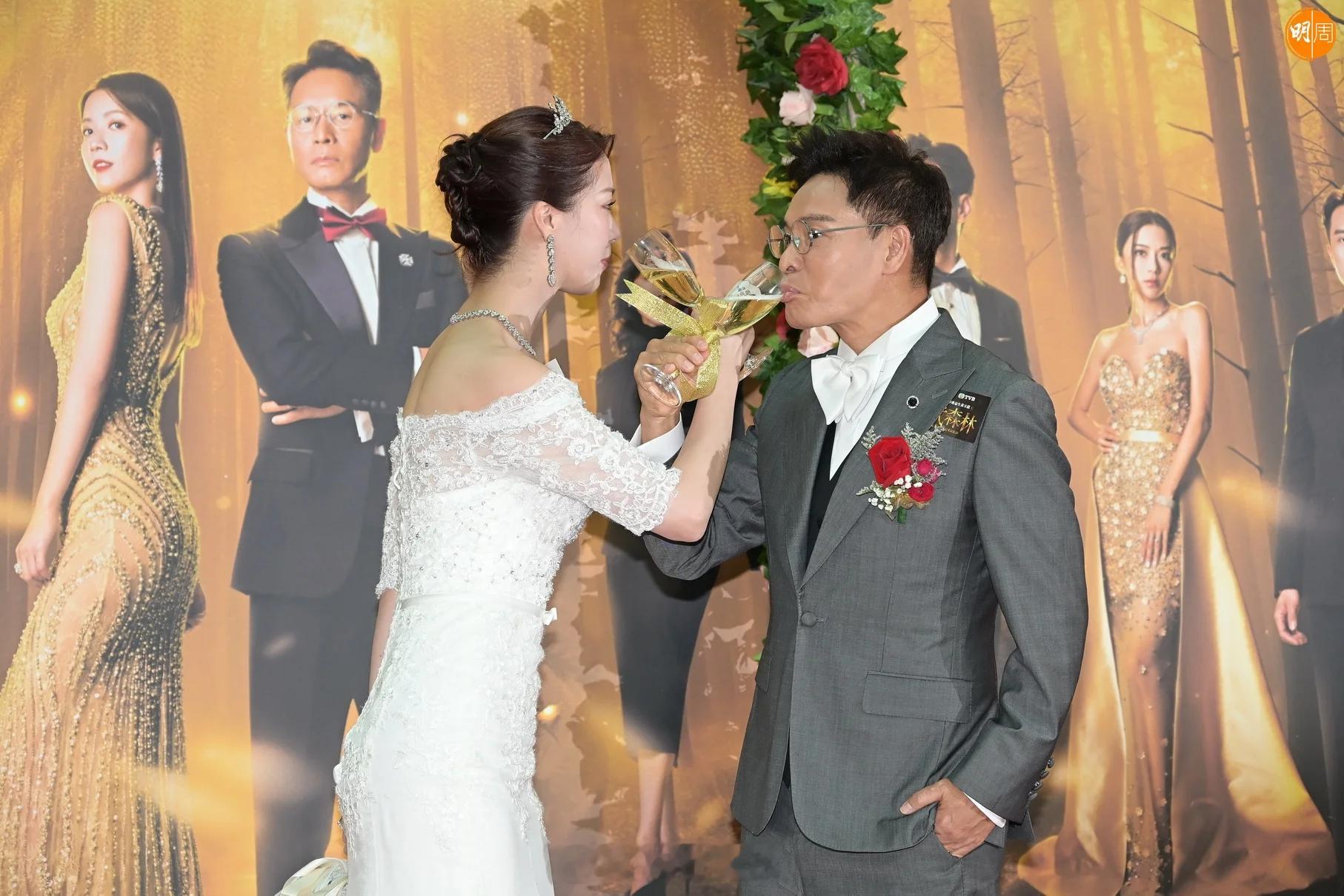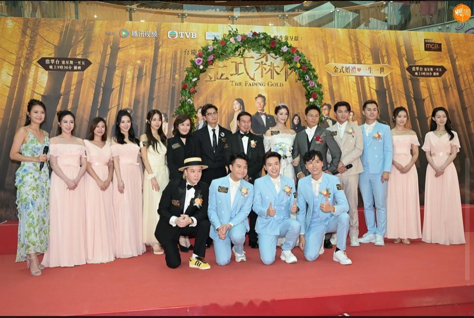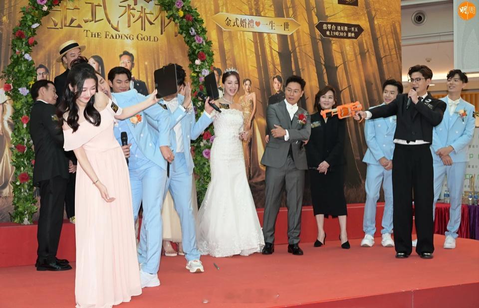 郭晉安、陳曉華、羅子溢、龔慈恩、何廣沛、何依婷、陳浚霆、羅天宇、莊子璇及監製林志華等昨日(19日)出席《金式森林》宣傳活動,重演郭晉安與陳曉華的婚禮場面,最終由襲慈恩接到新娘拋出的花球。陳曉華與羅子溢表示若收視達24點,會穿泳衣回饋觀眾,更預埋郭晉安一份,安仔笑說未見過有人在商場穿泳裝,大方表示:「各自響屋企自己著啦,泳衣冇問題。」安仔前妻歐倩怡被指有新戀情,被問到可有戥她開心?子女是否見過母親的新對象?安仔均不作回應。至於他又有否新對象?安仔笑說:「唔話畀你知!」