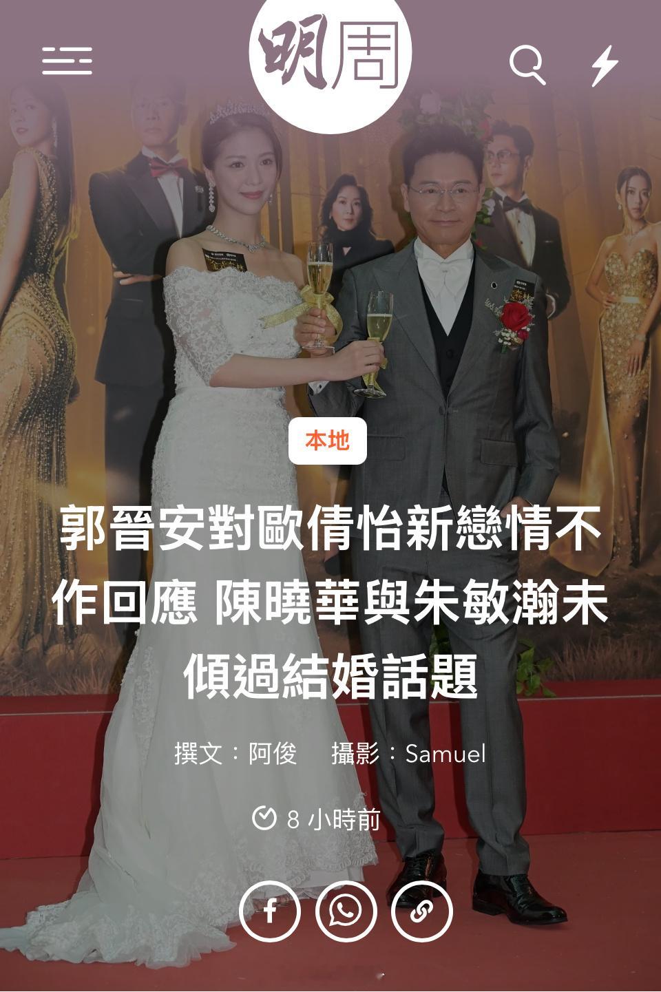 郭晉安對歐倩怡新戀情不作回應陳曉華與朱敏瀚未傾過結婚話題郭晉安、陳曉華、羅子溢