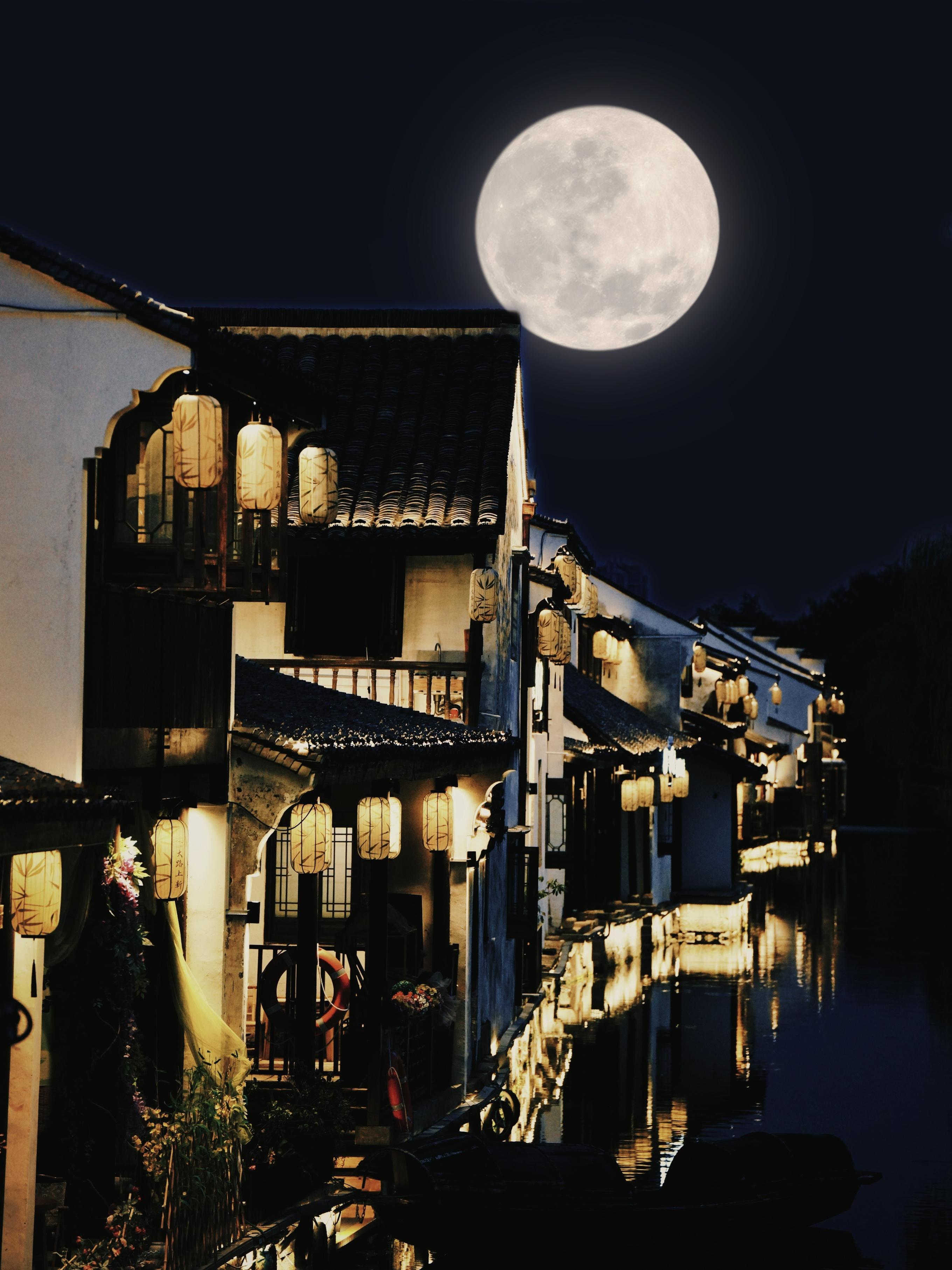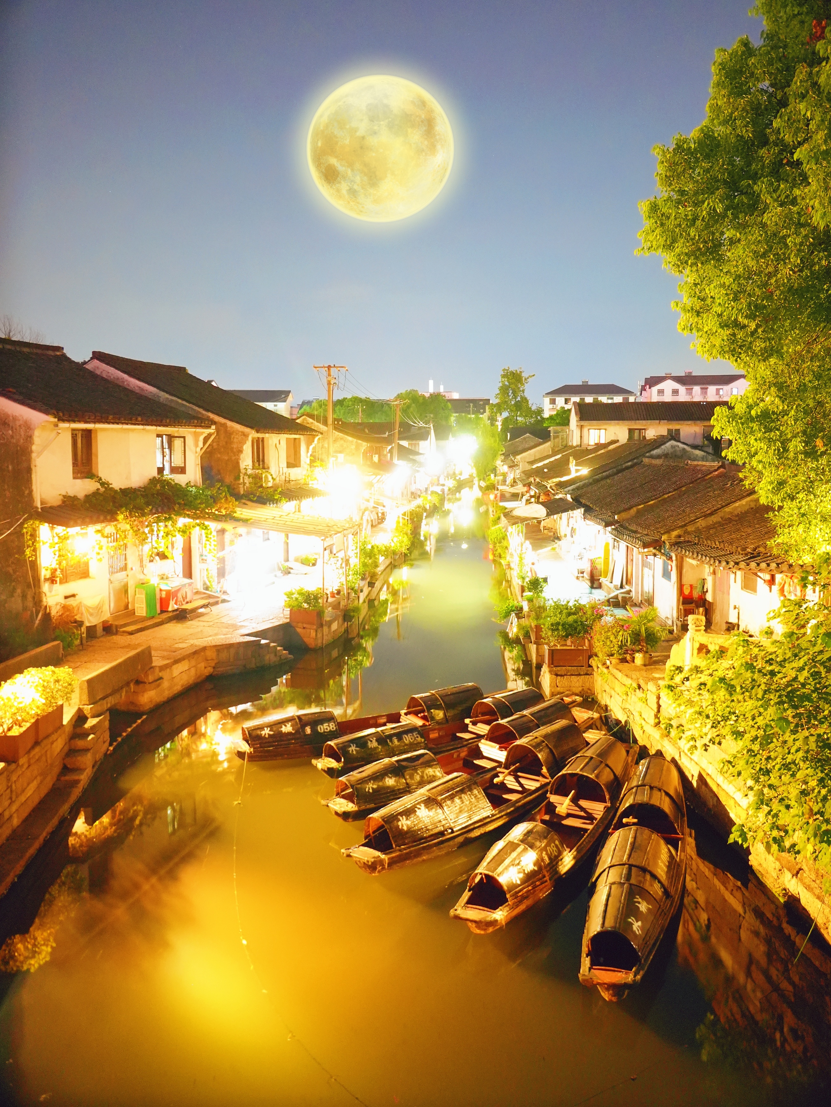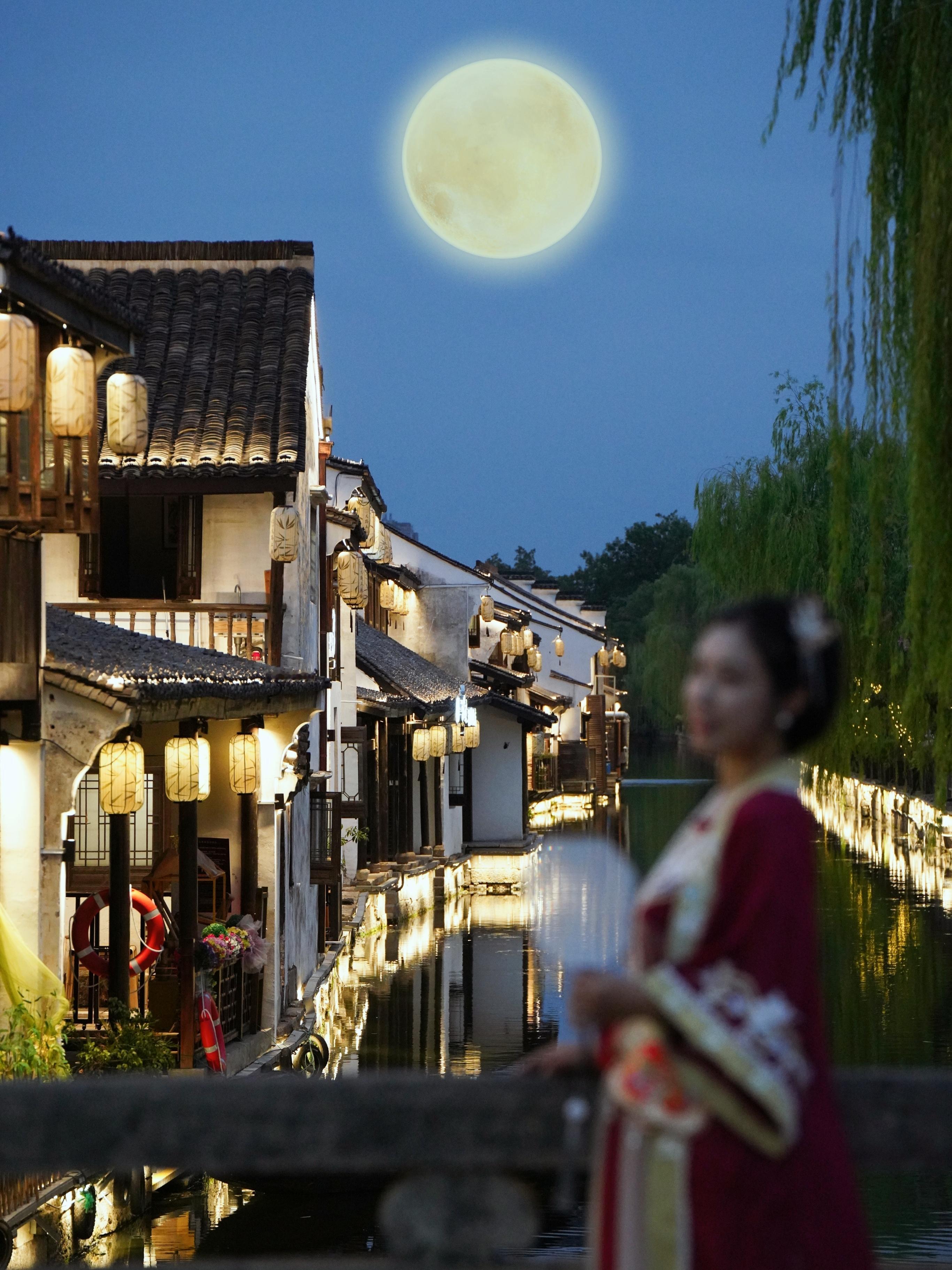 ✅仓桥直街:夜晚的古街灯笼亮起来超美!抬头就能看到专属月亮,青石板路+灯笼+月色,随手一拍都是江南夜景大片!