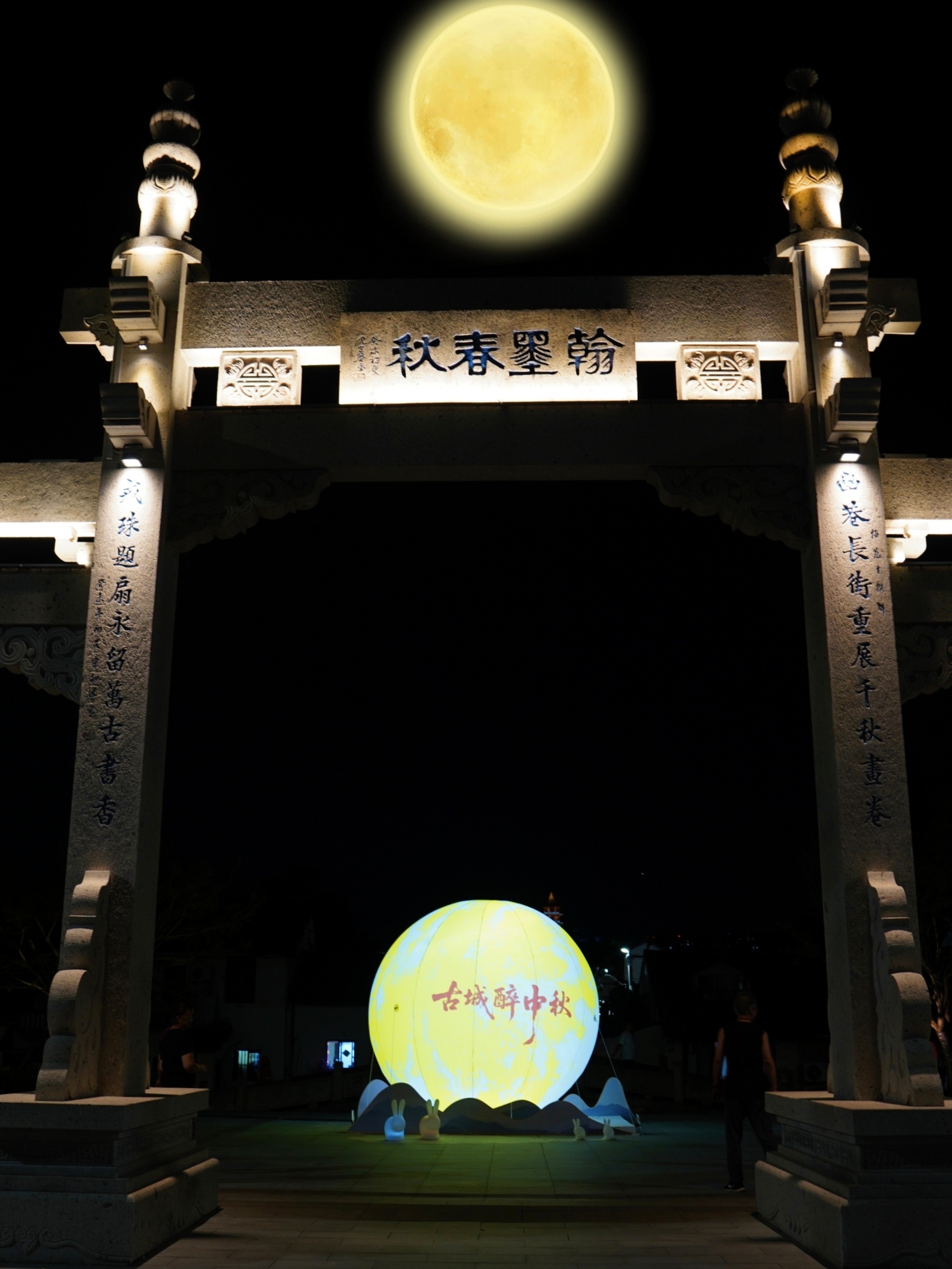 ✅书圣故里(南门游客中心):“墨香月语”超有文人气息!月光下的书法元素超有feel,穿件汉服拍简直绝了,朋友圈还以为我穿越了~