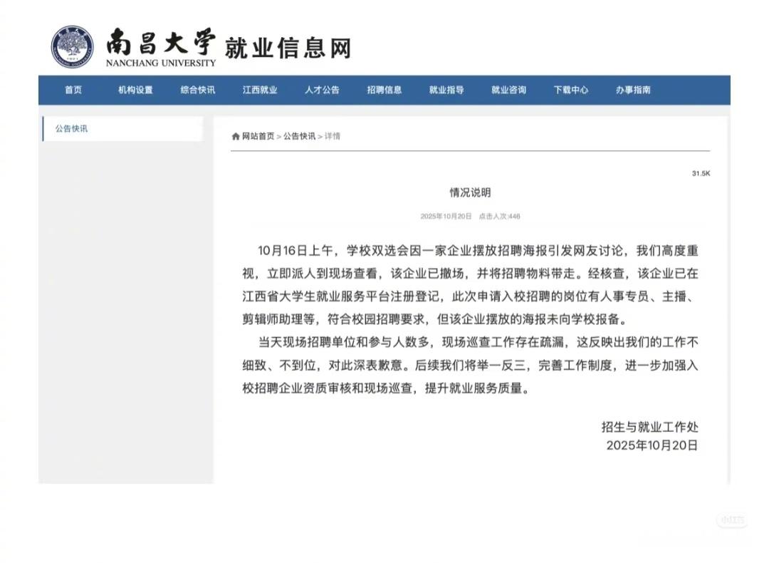 深夜,该校发情况说明,深表歉意。