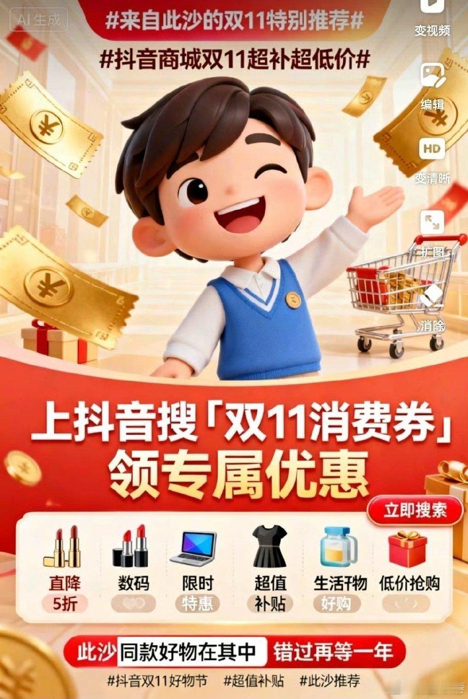 姐妹们速冲抖音!搜「双11消费券」,跟此沙一起get质感好物、薅透真实惠,这波快乐购物体检我先下车啦!