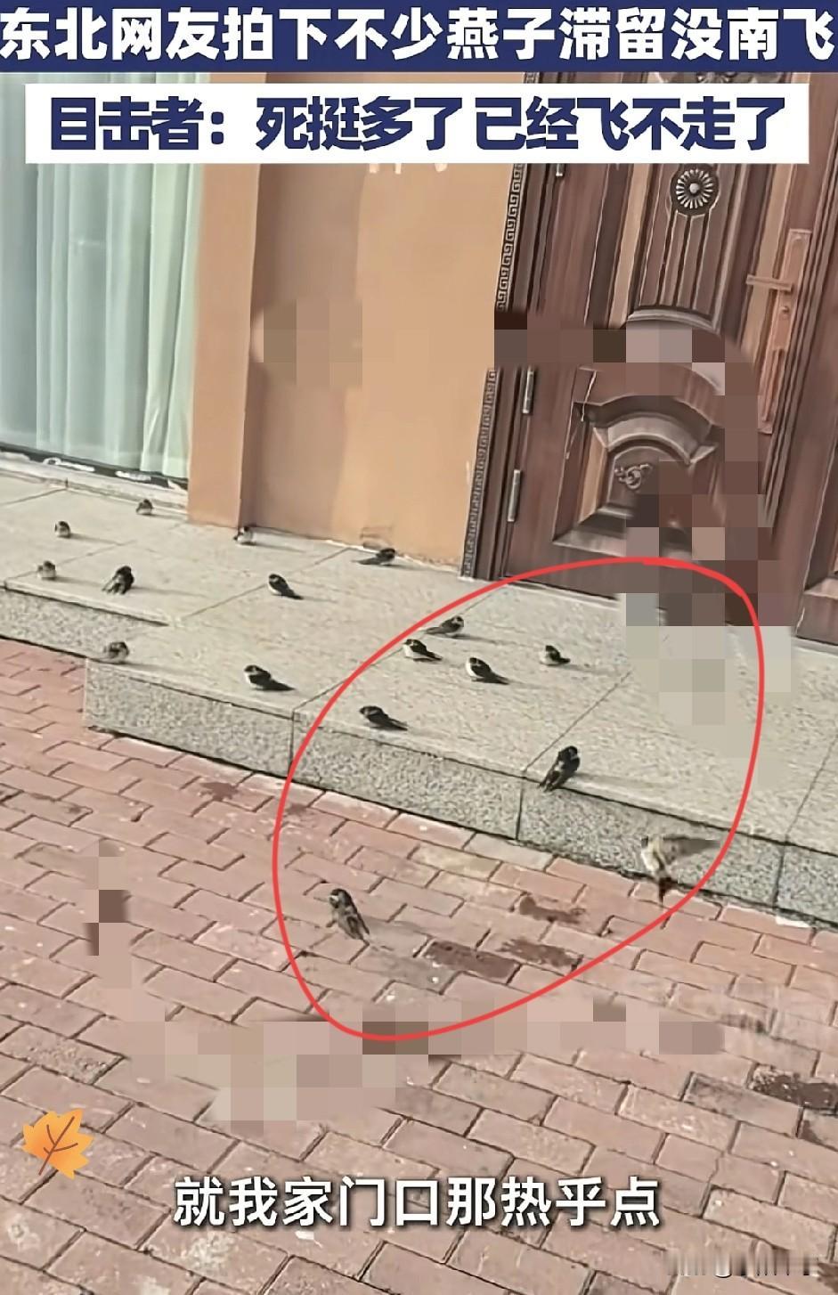 “这下真的解释不清了!”黑龙江五常,天气越来越冷了,女子却发现自家门口聚了一堆燕子,哪怕都被冻死了,它们也不往南方飞! 它们南飞全靠俩“信号”:一是能不能逮着虫子吃,二是白天是不是变短了! 要是寒流来得太突然,或是还有点小虫子没吃完,它们就觉得“再待两天也来得及”! 加上现在楼房、空调外机都散着热,大姐家门口那点暖意,对冻得打哆嗦的燕子来说,就是救命的“小热窝”,哪儿舍得挪窝啊! 大姐开玩笑说“想坐飞机捎它们去南方”,这话听着逗,实则满是心疼! 网友也跟着急,有人说想开门让燕子进屋,又怕一靠近就惊着它们! 这些小生灵哪懂啥“降温预警”,只是本能地抓住一点温暖就不肯放! 大家对此有什么看法?