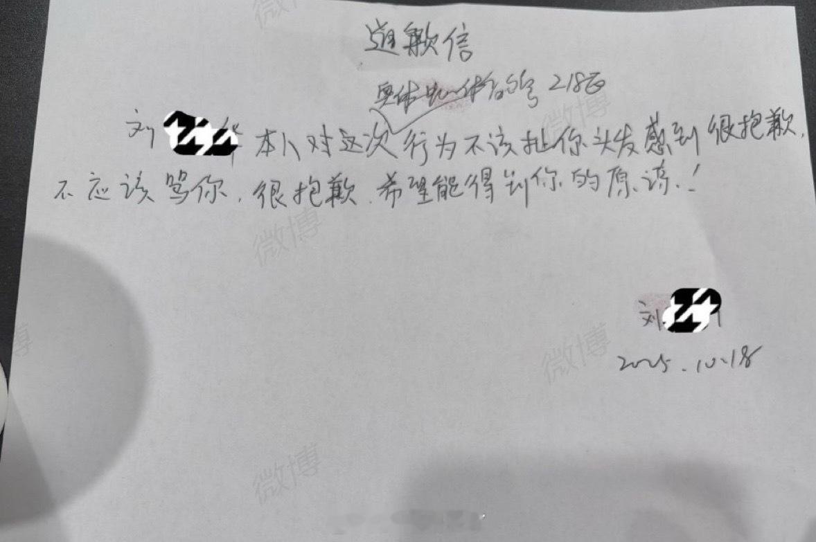 NBA名人赛线下被王俊凯粉丝拽头发的任嘉伦粉丝发文详细讲述了全过程,这道歉信字写得可真丑啊,而且毫无诚意!