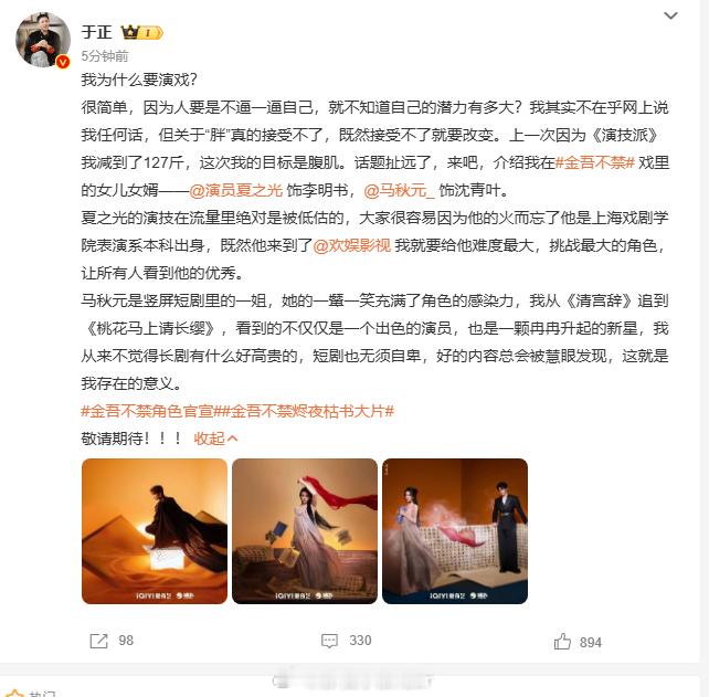 于正这次的目标是腹肌于正说夏之光的演戏被低估从素人演员言论到力挺夏之光,于正选