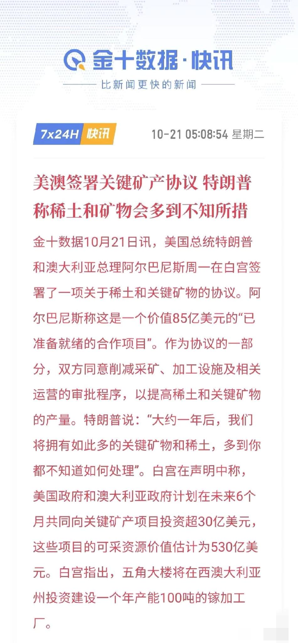 被稀土淹没,不知所措。 美澳周一在签署了一项关于稀土和关键矿物的协议。在稀土的提取需要前期投入巨额资金,并且并不赚钱,相当于你投入一千万一年赚5万块,我们国家五几年就在开始筹谋 他们想几年超越,还是有难度的,低回报对于资本来讲是不愿意投入的。