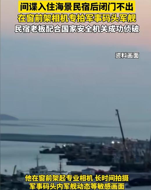 抓得好!一男子准备长住海景房,店主以为是大客户,却没想到,他竟然发现男子整体都不出门,也未像一般游客外出游览,每天在窗边架设专业相机,联想到他曾咨询“民宿能否看到军港?”“军港能否租乘小船外出?”等问题。店主果断选择了报警! 李先生在镇上经营着一家民宿,虽然规模不算大,但地理位置绝佳,几乎每间房都能看到辽阔的大海。游客们住在这里,不仅能享受安静的海滨环境,还有美丽的海景作伴。 生意一直稳稳当当,客源主要来自周围的城镇,也有不少远道而来的游客。 李先生经常迎来送往,每天忙碌却也充实,特别是在旅游旺季,生意更是红火。 有一天,店里来了一个男客人,看起来大约三十多岁,穿着简单的休闲装,背着一个黑色的行李包,面色沉稳。刚一进店,客人便直接问李先生:“你这儿有没有长期住宿的房间?” 李先生一愣,没想到他一上来就提出了这个要求。客人接着说道:“我打算在这待上一段时间,半个月的房费我先给你。”说着,他就掏出钱包,拿出了现金,递给了李先生。 李先生一看,客人付了半个月的房费,这倒是让他有些高兴。 长期住的客人,省得每天换床单打扫,也能稳定地收取房租,简直是“稳赚不赔”的买卖。 于是,李先生心里觉得这肯定是个大客户,也不再多问,决定给他安排最好的房间。 那间房是民宿里朝南的那一间,面积较大,窗外正好是最开阔的海景。 每当清晨,阳光洒进房间,空气清新,客人可以在窗前享受一整天的海风和远处海平线的美景。李先生特地把这间房安排给了客人,心里暗自高兴:这样一来,他不仅能稳定收入,还能让客人感到满意,生意也会更好。 第二天,客人便开始长时间待在房里了。几天过去了,李先生心里渐渐觉得不对劲。民宿的常客大多都是来度假的游客,早晨天刚亮,大家都会拿起泳衣,急匆匆地往海滩跑,要么赶海,要么去附近的景点转转。 可是这位男客人却完全不同,每天一大早,他都没出门,整天呆在房间里,除了偶尔下楼买点简单的食物,几乎没有任何活动。李先生觉得有些奇怪,但也没多想,毕竟有的人可能就是喜欢安静一点。 有一天,他去打扫房间时,突然发觉情况变得更加蹊跷。当他推开那间朝南的房间门时,眼前的一幕让他一愣——房间里落地窗的窗帘竟然完全拉开了,窗边放着一台黑黢黢的专业相机。那台相机并不像普通的旅游相机,而是一台很明显的高端设备,镜头正对着远处的军港。李先生心里一震,疑惑不已。 “拍海景用得着这么专业的相机吗?而且,他为什么专挑军港那一块拍?”李先生心里闪过一个不太好的念头。他并不是特别了解这些高端设备,但至少知道,一般游客并不会带这种类型的相机来度假。更让他疑惑的是,这个男人看起来一点都不像是那种喜欢拍摄风景的游客,他总是躲在房间里,几乎没见过他跟别人交流过。 这时,李先生才意识到,自己可能碰到了不寻常的事情。他回想起前几天,国家安全机关的干警曾经来过民宿区做过一些安全宣传,提醒民宿业主注意可疑人员。 李先生马上联系了当地警方,将自己所看到的情况报告了上去。 警方接到报案后,迅速展开了调查。没多久,警方就确认了李先生的怀疑,那个男客人竟然是一个间谍,正试图利用民宿的便利条件,拍摄与国家安全有关的敏感区域——军港。通过技术手段,警方进一步确认了他的身份和活动轨迹。 很快,警方将那名男子抓获,确保了没有泄露任何敏感信息。 李先生听到这个消息时,心里一阵后怕。他万万没想到,自己无意中的一个小小举动,竟然及时发现了这个潜藏在民宿中的间谍。如果他没有去打扫那间房,也许事情就会变得更加严重。 事后,警方还特地给李先生送来了感谢信,并提醒他以后要更加注意类似情况。李先生虽然心有余悸,但也深感庆幸,幸好他及时意识到问题,做出了正确的判断,没有让情况发展到无法挽回的地步。