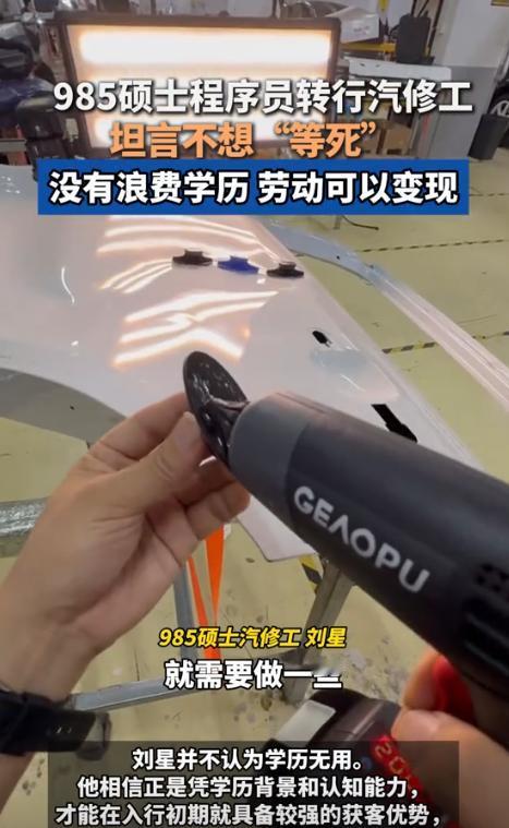“人各有命啊!”10月19日报道,湖北武汉,一30岁男子从双一流大学硕士毕业后,放弃了高薪的程序员工作,反而做起了汽修工作,他表示一个月赚20000元轻轻松松,最重要的是他的头发都长回来了!网友:这才是每个人有每个人的活法啊。 在同龄人眼里刘星是妥妥的 “人生赢家”。 大学刚毕业就进了大厂,工资高、福利好,父母逢人就夸:“我儿子在互联网大公司上班,年终奖都能顶别人一年的工资。” 亲戚们听了都羡慕,说他年轻有为、前途无量。 可只有刘星自己知道,这份“体面工作”有多要命。刚入职那两年,他几乎每天都是“996”,早上九点上班,晚上九点下班是最轻松的情况。 项目一多,常常得干到凌晨两三点。 电脑一关,天都快亮了,地铁停运,只能打车回家。 到家洗个澡倒头就睡,五六个小时后又得爬起来继续干。 他桌上常年摆着三样东西:咖啡、维生素片和生发液。 头发一把一把地掉,洗头的时候都不敢低头看下水口。 “那时候压力大得不行,晚上睡不着,脑子里全是项目、汇报、KPI。” 刘星说。 有一次,公司加班到凌晨四点,他站在办公室窗前,看着外面漆黑的城市,忽然觉得特别空。 那一刻他问自己:“我到底在图啥?这么拼,值吗?” 最让他焦虑的,是那种“被随时淘汰”的感觉。 “技术更新太快,今天刚学的东西,明天可能就落伍了。你不卷,就有人比你更卷。”他回忆道。 转折发生在一次修车时。 那天车被人蹭了,4S店报价要换整块板,少说三四千。 后来听人说有个“无痕凹陷修复”,便宜又不伤原厂漆。 刘星看着师傅一顿操作,把凹坑修得跟新的一样,整个人都愣住了。“我当时就在想,这门技术挺有意思啊!” 回去后他开始查资料、看视频,越看越上头。 后来干脆一咬牙,辞了职,去南京找了个老师傅学手艺。 培训费2万,三个月封闭学习。 “有时候练到手发抖,拿筷子都拿不稳,但第二天一醒又跑去练。那时候除了修车,脑子里啥都没有。”刘星笑着回忆。 今年7月,他回武汉开干,专门做上门凹陷修复。 每单两三百块,运气好的时候一天能接五六单。月底一算,纯收入两万出头,还不用挨夜班,也没人盯着考核。 “以前是坐办公室掉头发,现在是修车掉汗。身体累点,但人踏实。”刘星说。更神奇的是,过去那块发际线后退的地方,这几个月竟慢慢长出了新发。 现在他把生意做大了,开了小店,还请了两个徒弟。 现在满脸机油、T恤上全是油点的他,谁能想到竟是“双一流”大学的计算机硕士,之前还在大厂做程序员,年薪25万。 刘星笑着说:“凹陷修复其实就是‘原路敲回’,车怎么凹进去的,我就照着力道一点点敲回来,不用喷漆,不伤原漆。” 他手里那根小铁锤,是他最得意的家伙。可谁能想到,这份手艺的背后,是他从头开始的第二次人生。 网上有人质疑他“浪费学历”,他倒不在意:“学历不就是学会怎么学嘛?我学技术上手快,还能自己做推广拉客,这不都用上了吗?” 有网友看到他的故事留言说:“头发长回来了,就说明选对路了。”还有人感慨:“活得舒服,比高薪重要。” 刘星也笑着说:“以前是被标签绑着,现在是靠手艺吃饭。能自己安排时间,能接老婆下班,能睡个踏实觉,这才是我想要的生活。” 在他看来,工作没高低,重要的是那份心安。 他说得很实在:“钱能再赚,头发和健康没了就真回不来。” 对此你怎么看? 信源:青岛新闻网