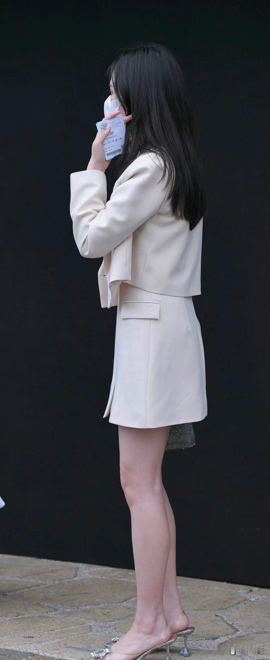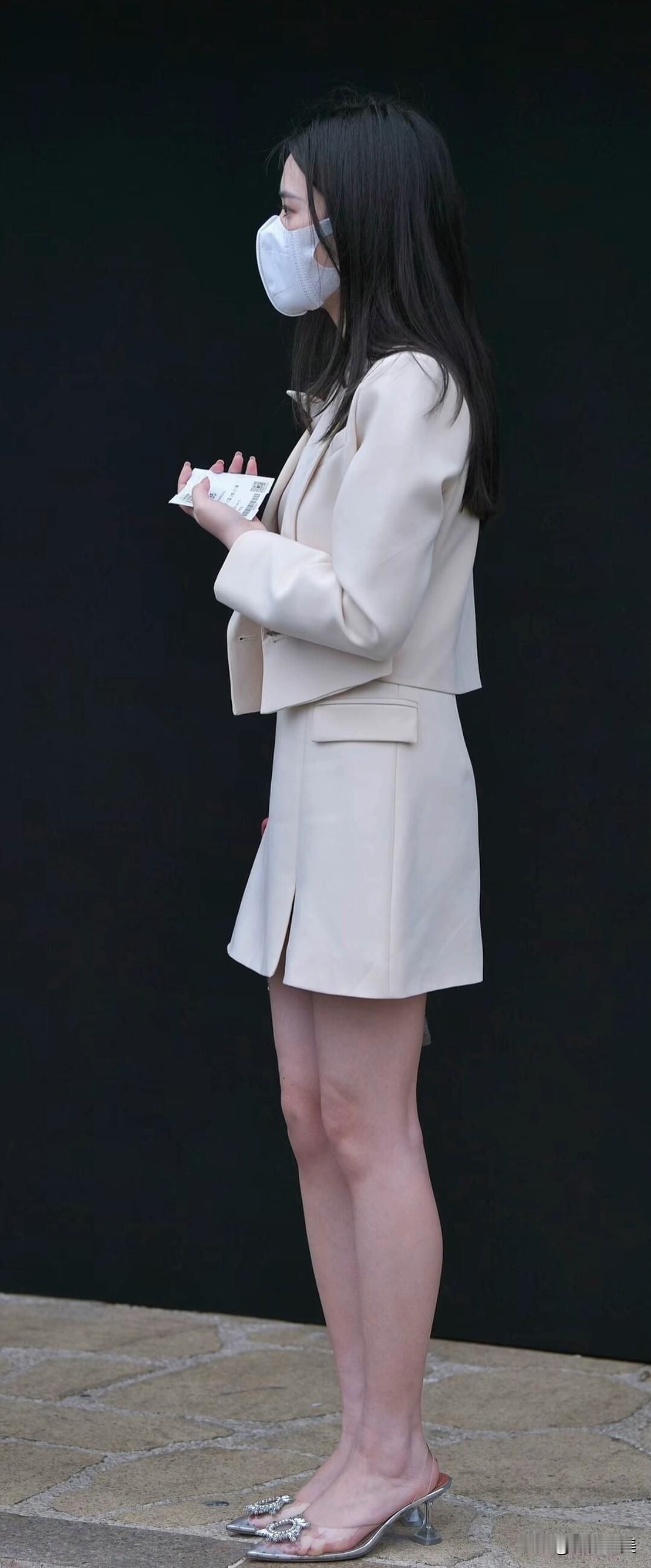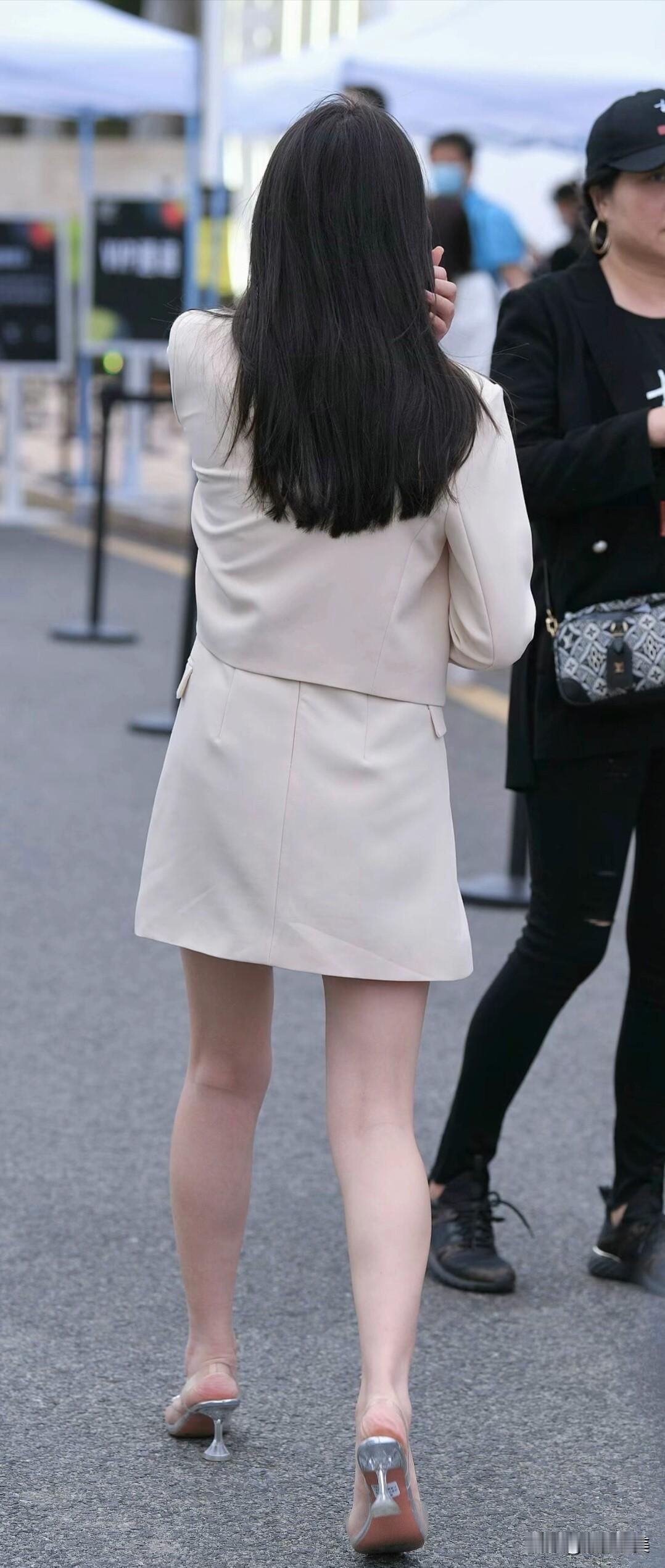 浅米色短款西装搭配同色系短裙,再配上带钻的小高跟,简约又好看,很适合上班族借鉴呢。