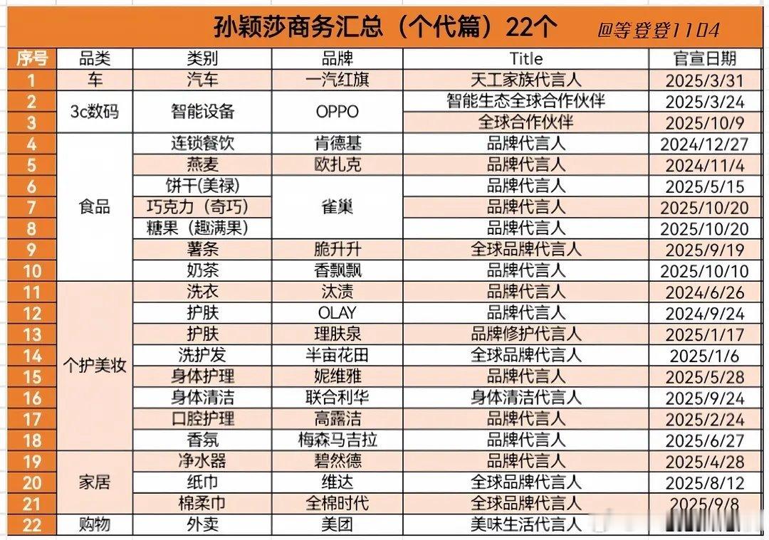 孙颖莎的商务22个,基本都是代言人,这数量堪比好多流量