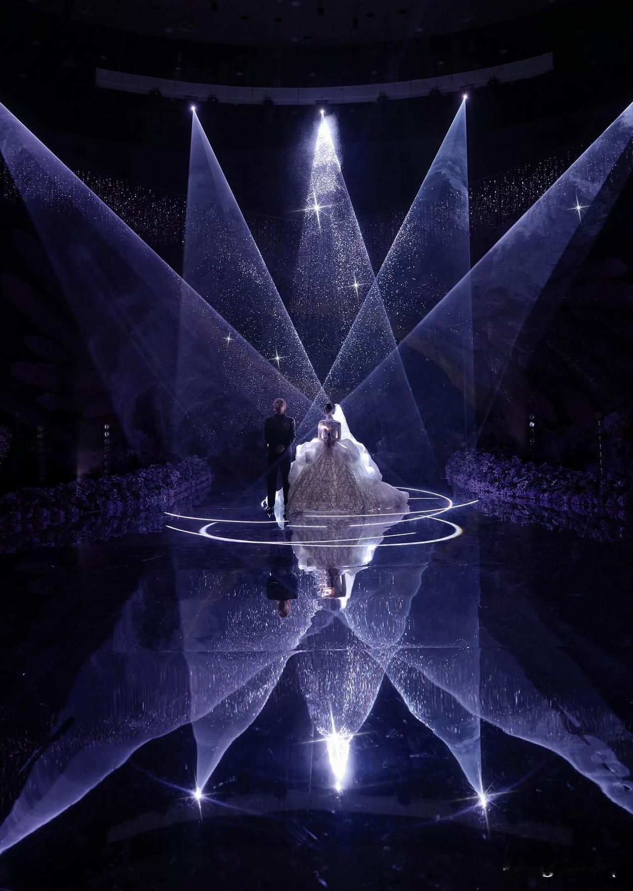 我太喜欢婚礼内场这几束光了,星光熠熠,完美落在黄子韬徐艺洋身上,再加上紫色光影,