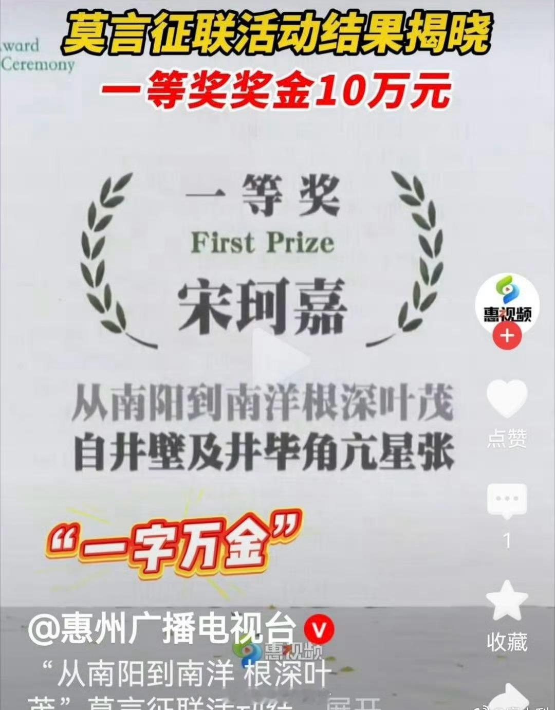 00后对出莫言上联获10万奖金自井壁及井毕角亢星张,这个下联获得了10万元头等奖[思考]