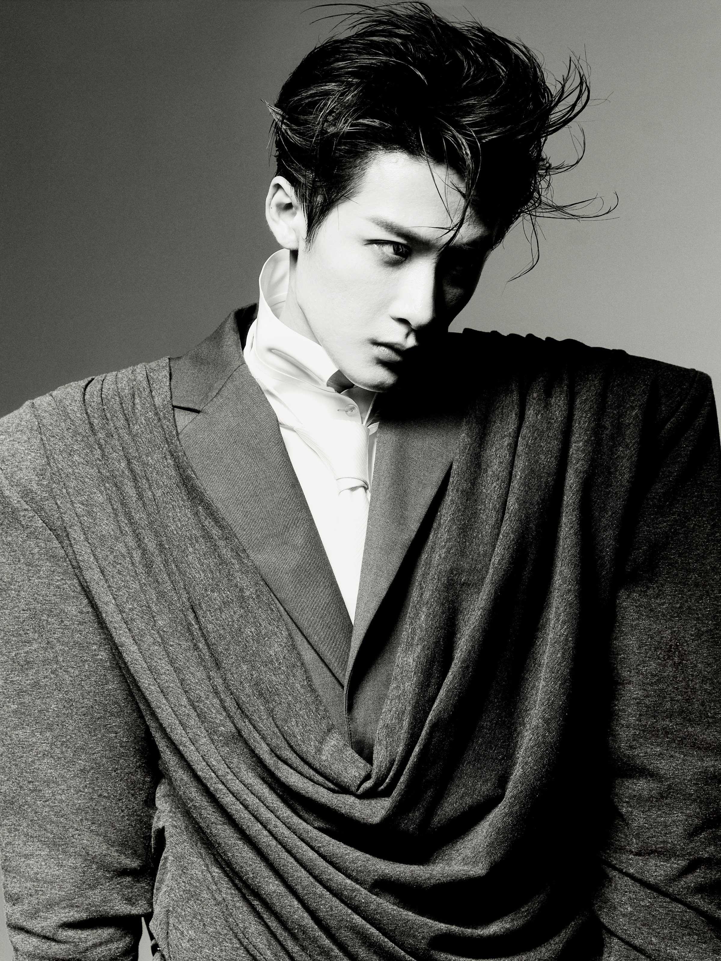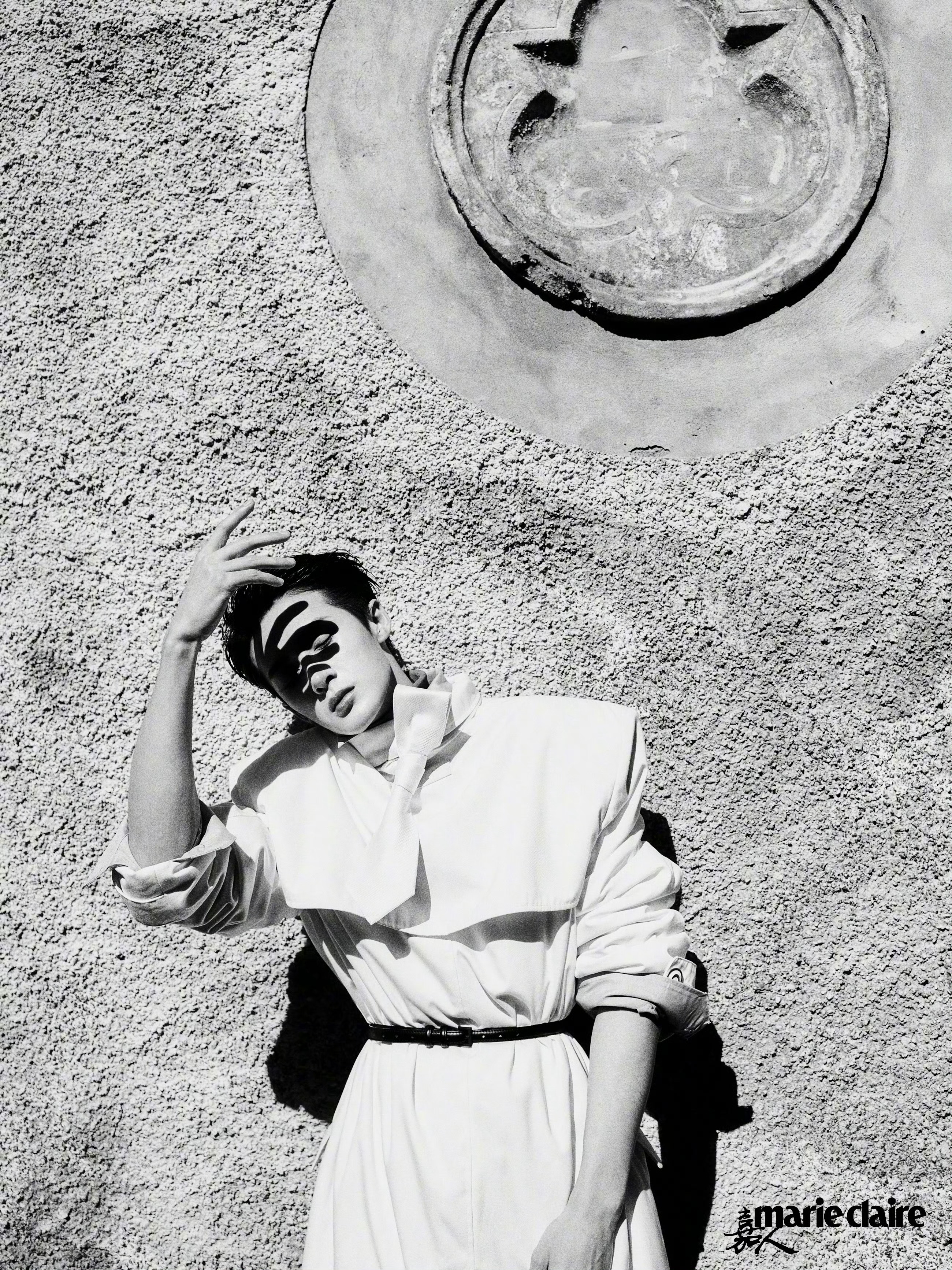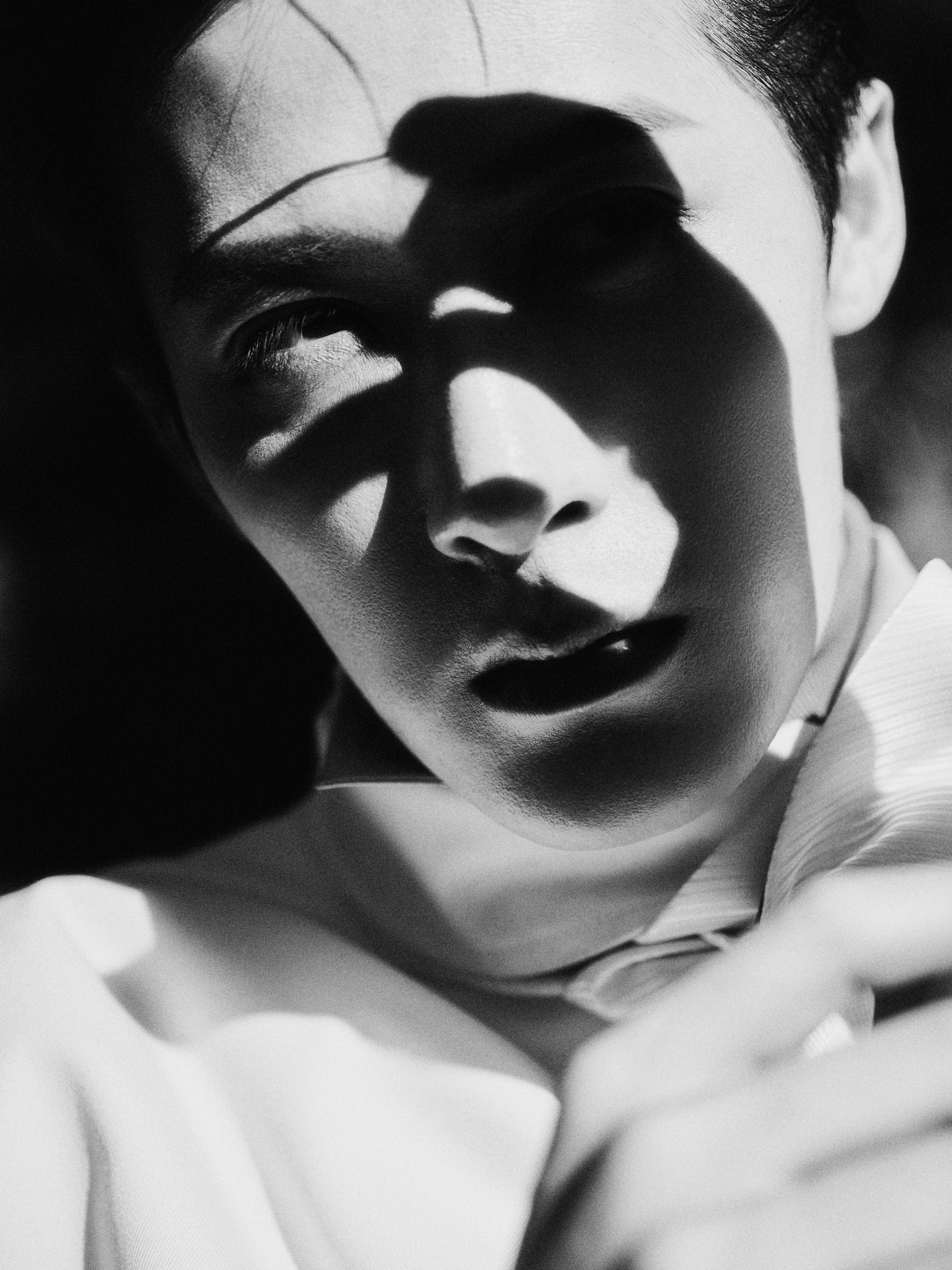 锋利的眉骨、挺拔的鼻梁、利落的下颌线、带着故事感的眼神、被布料缠绕的西装、在极致简约的黑白光影下,檀健次好像美术馆里被掀起防尘绒布的贵重石膏雕塑,每一处骨骼肌肉的弧度都出自于米开朗基罗之手的完美的艺术品。