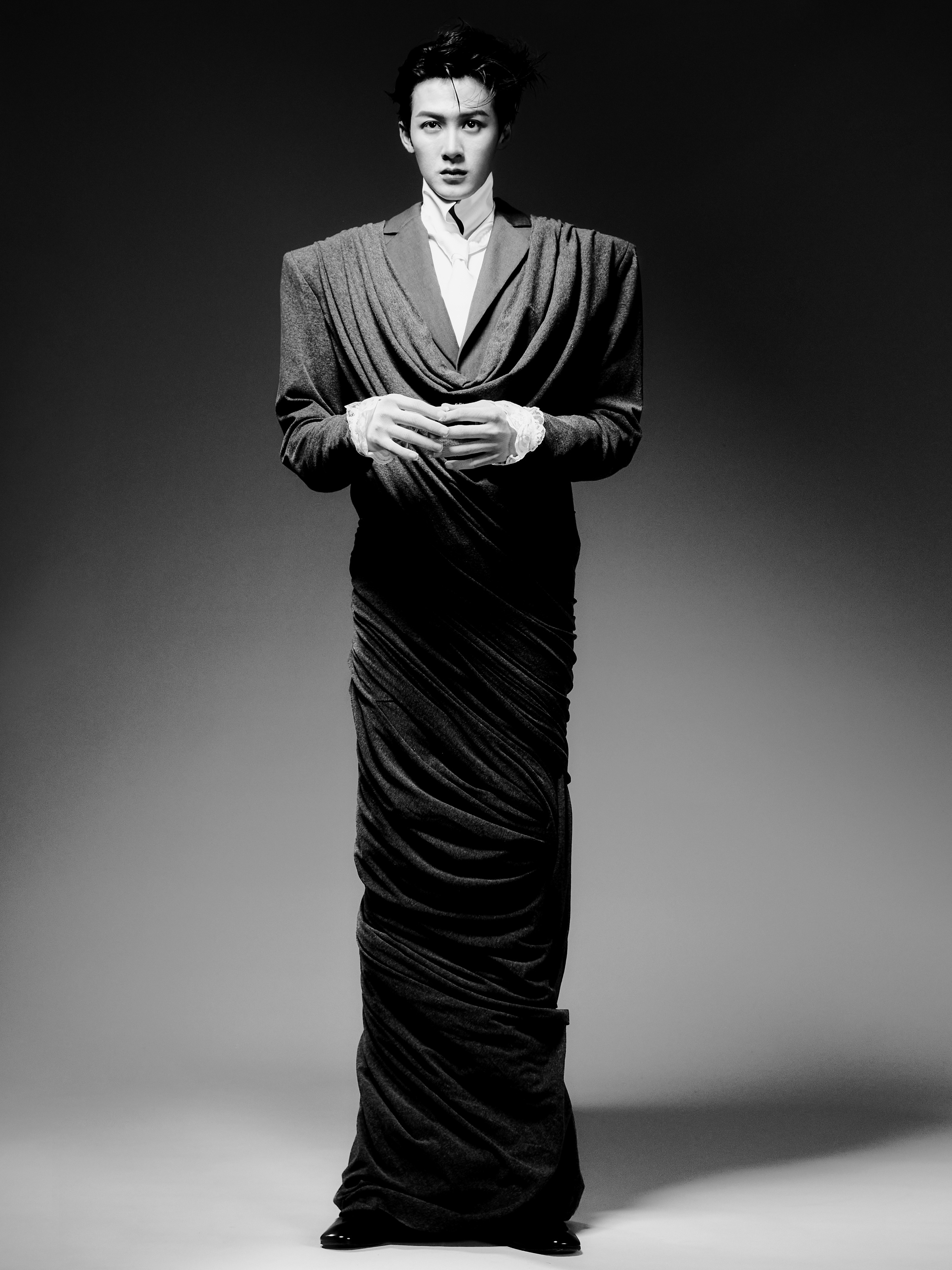 大胆又克制,圣洁又乖张,冲突如此强烈的风格造型却被檀健次拍出了自己的泠冽高级感。