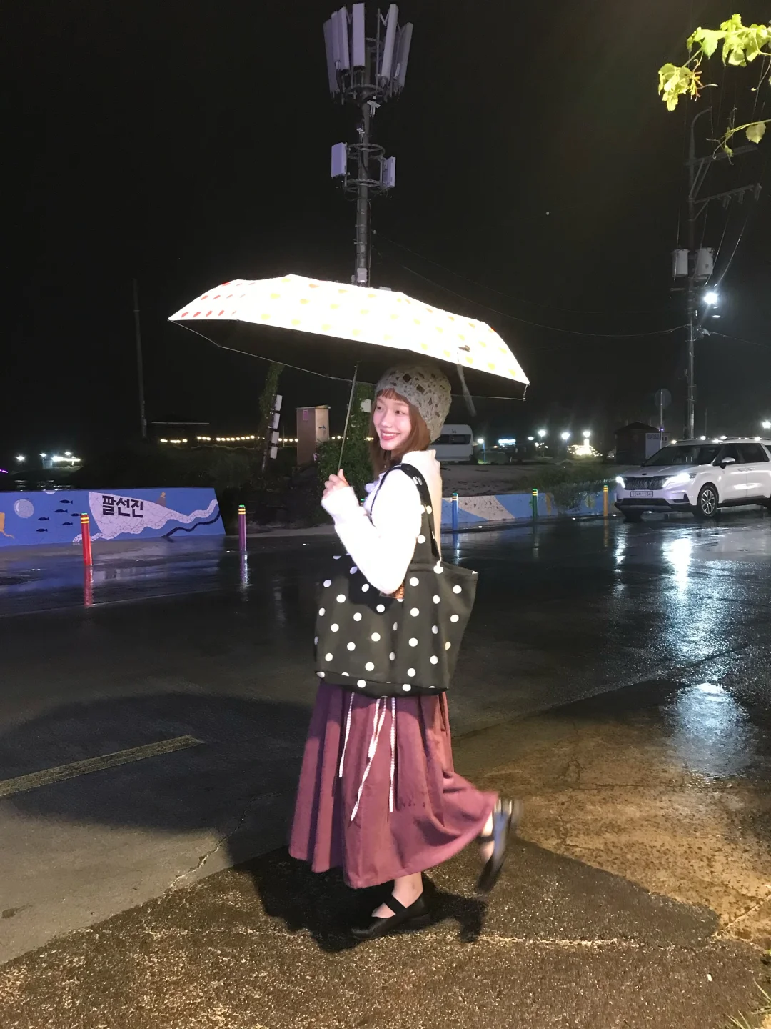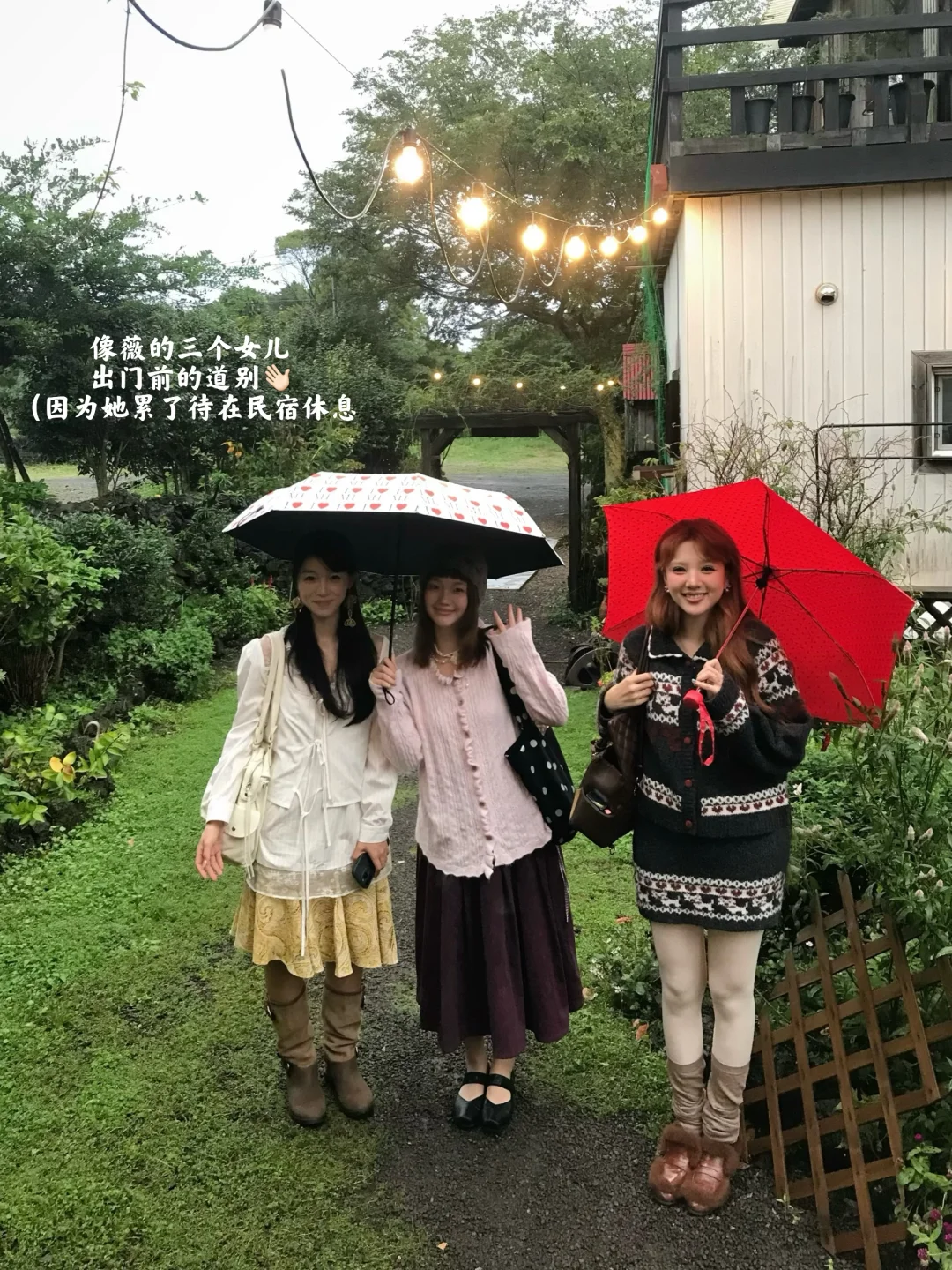 和朋友在一起就算是下雨天也很开心呀! 终于用上了我的漂亮伞☂️ 这一次济州岛旅行真的很松弛了 在民宿睡到中午 拍拍照聊聊天到快天黑才出门~ 去咸徳海水浴场吃了细花排骨!超绝!!👍 打包了炸鸡🍗在便利店买了些啤酒🍺 继续回民宿畅聊 是我的理想假日了~