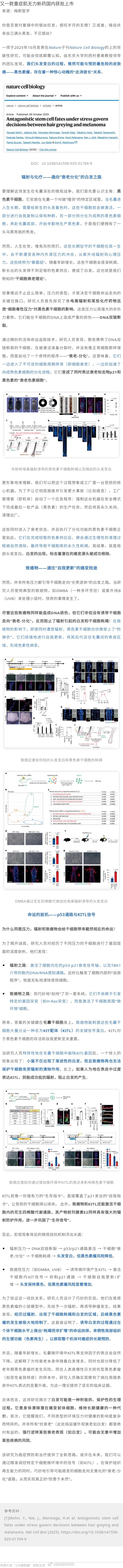 一项于2025年10月发表在Nature子刊Nature Cell Biology的上的突破性研究,可能会彻底颠覆认知。由东京大学的西村惠美教授领导的团队发现,我们头发变白的过程,竟然可能与预防最危险的皮肤癌——黑色素瘤,存在着一种惊心动魄的“此消彼长”关系。 via 梅斯医学