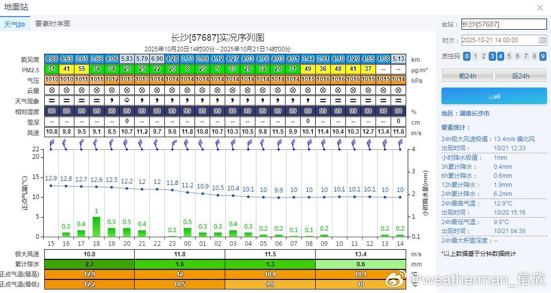【气温】今天白天北方大多升温,南方还在降温。截至14时最高,只有云南景洪超30℃。而在湖南等地,阴雨使得气温几乎恒定。长沙从今晨4时到下午14时,气温在10℃上下0.1℃范围内窄幅波动。