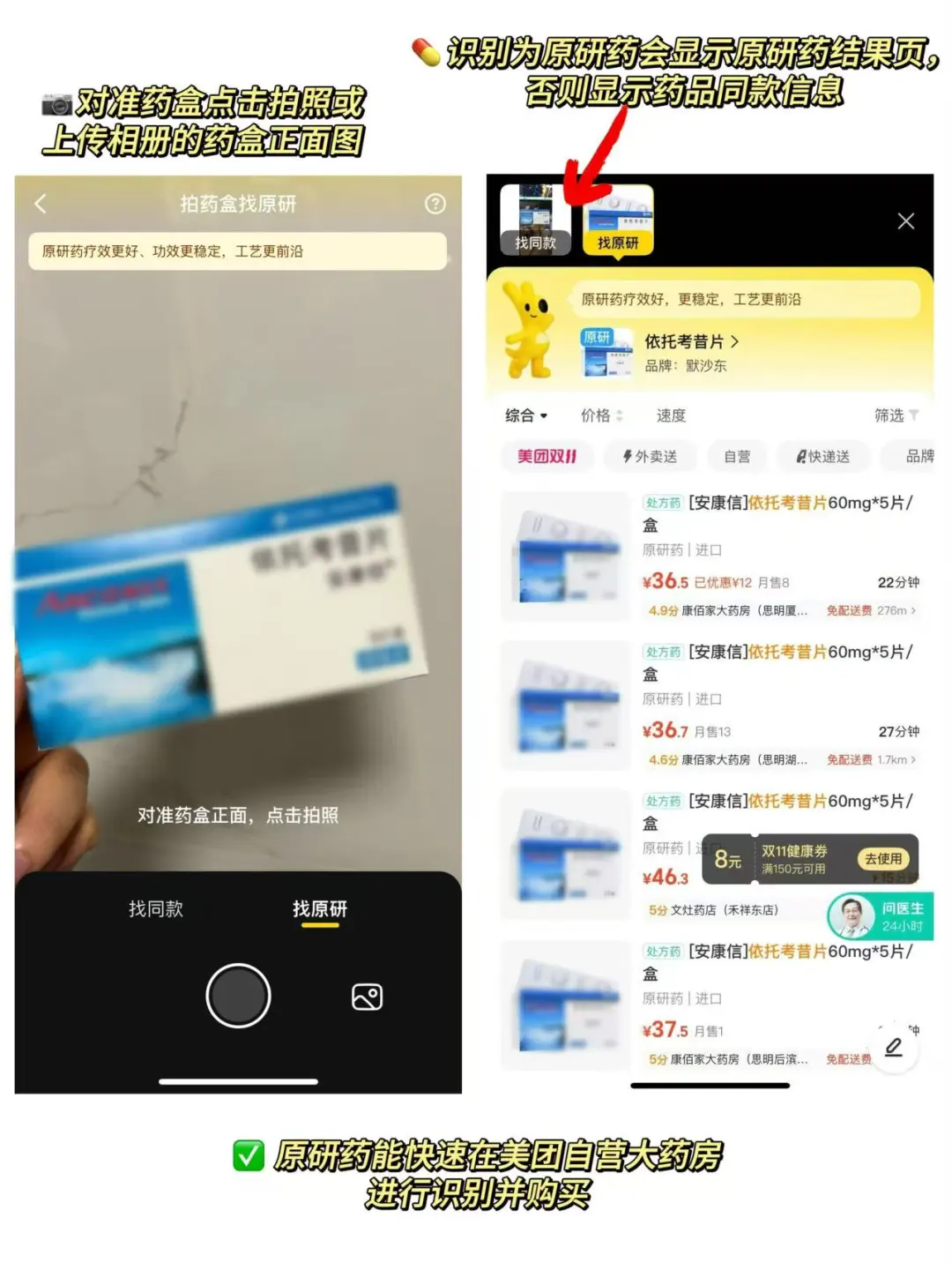 安利给大家【美团买药原研药小助手】直接扫描药盒正面,就能立刻识别了,再也不用线下到处跑,去对比,线上买又怕买到假药,这个认准“美团自营大药房”下单就行,毕竟是美团官方自营店,品质这块是没话说的,不仅全网低价不说还都是正品好药,直接选中一键下单!顺丰空运又快,快把安心好药带回家~