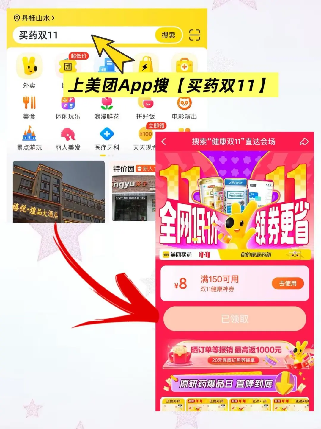 现在双11还有活动呢,只要曾经一年在美团自营大药房下过单的,到上晒订单截图带上话题这单健康投资超值 必得20元买药无门槛红包,每天还有一个免单名额随机抽取呢!!上美团App搜“买药双11”即可参与活动!