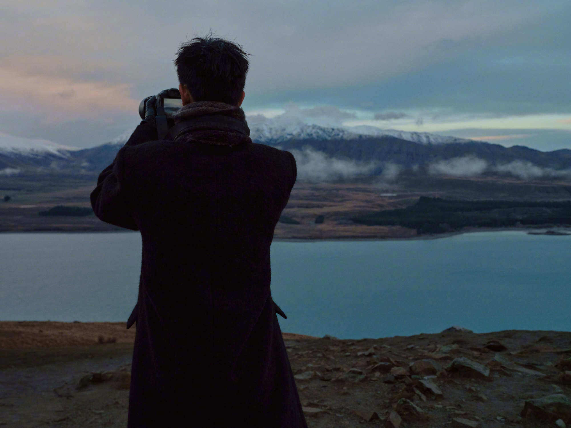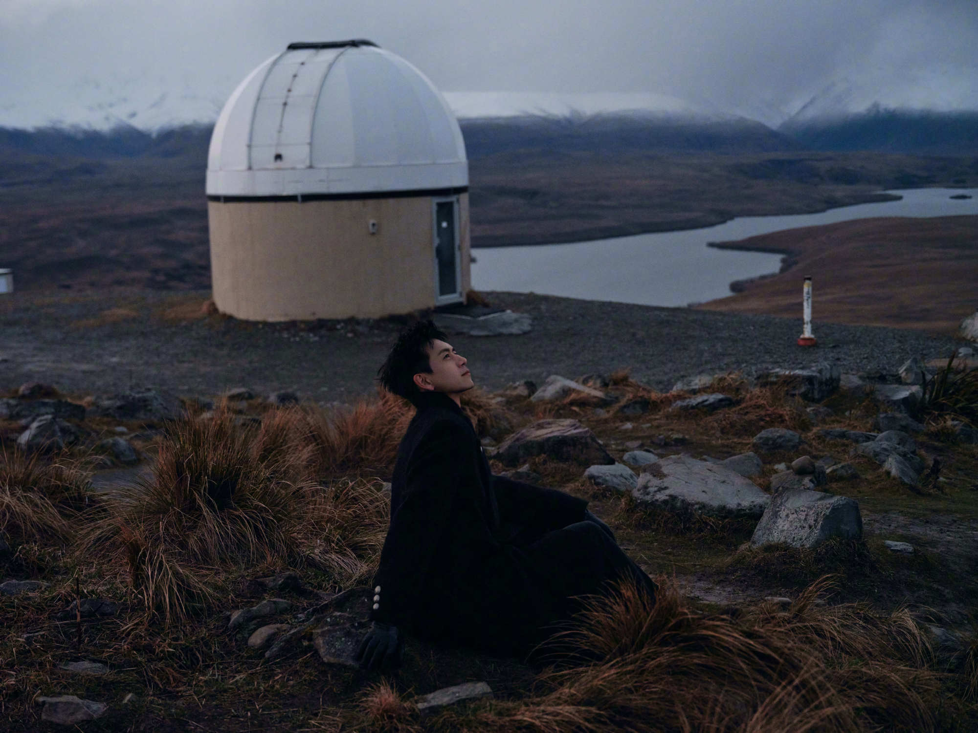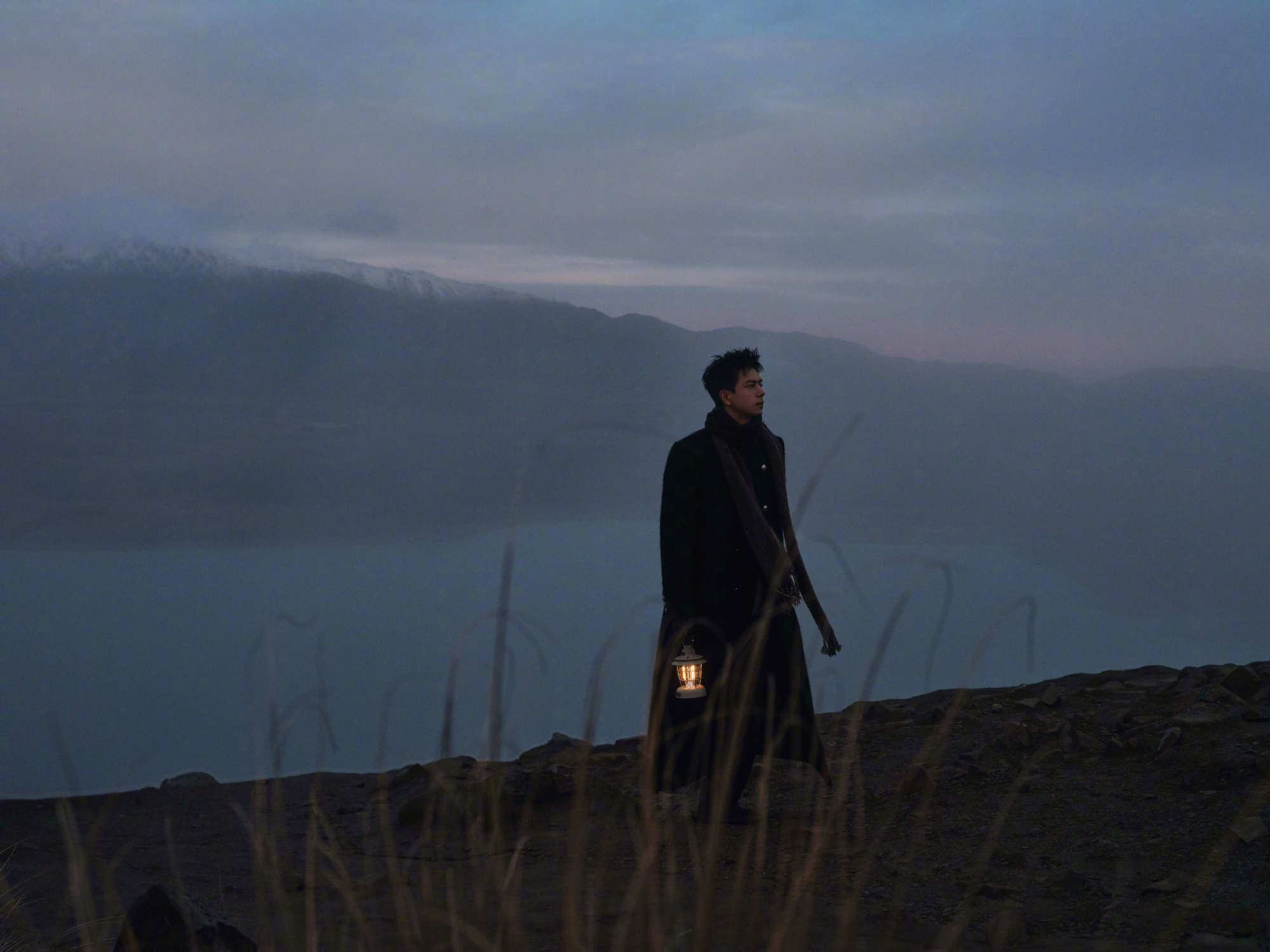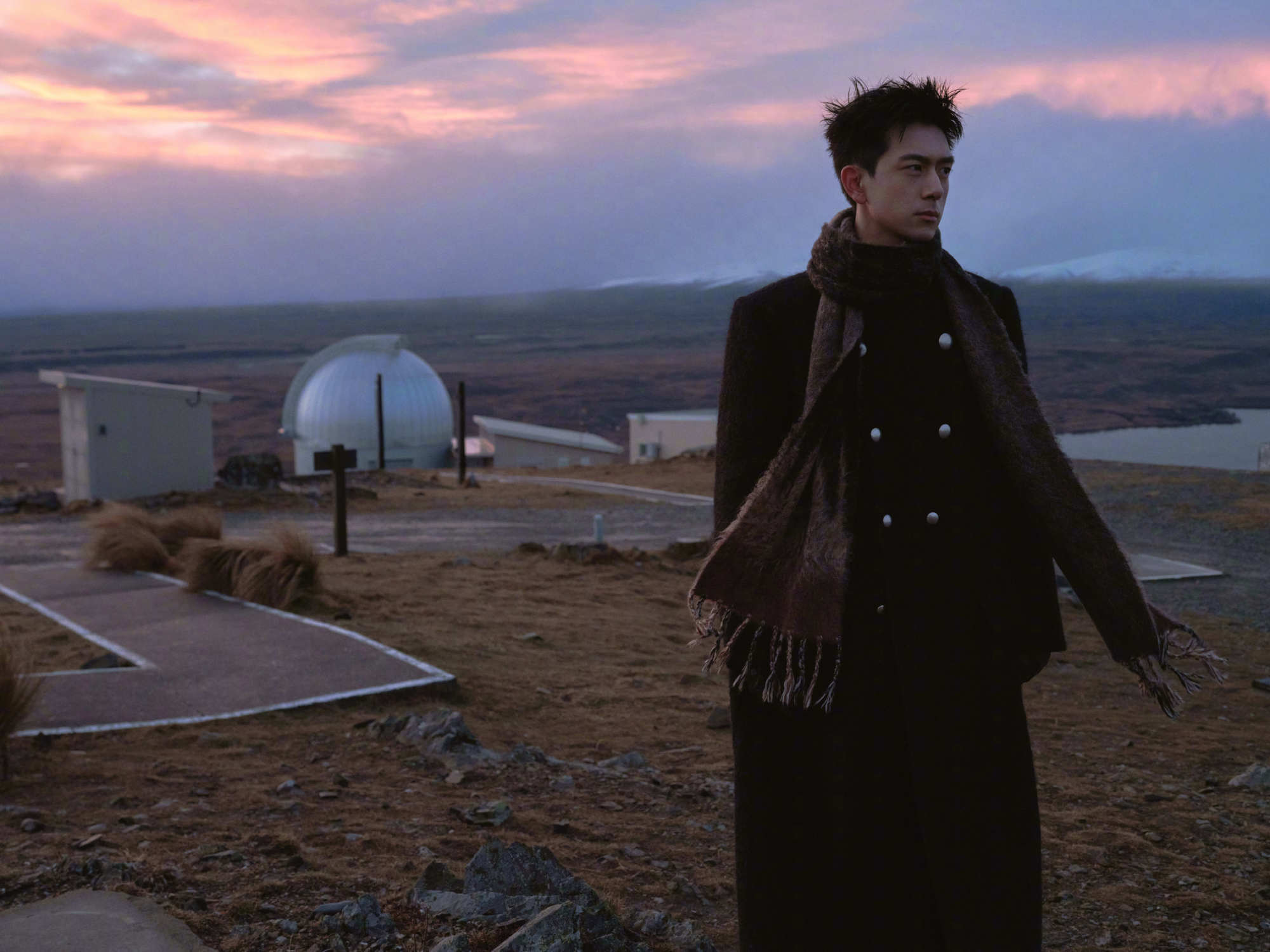 男生穿搭灵感李现新西兰穿搭李现的新西兰穿搭,黑色长款大衣配复古围巾,在湖山间提