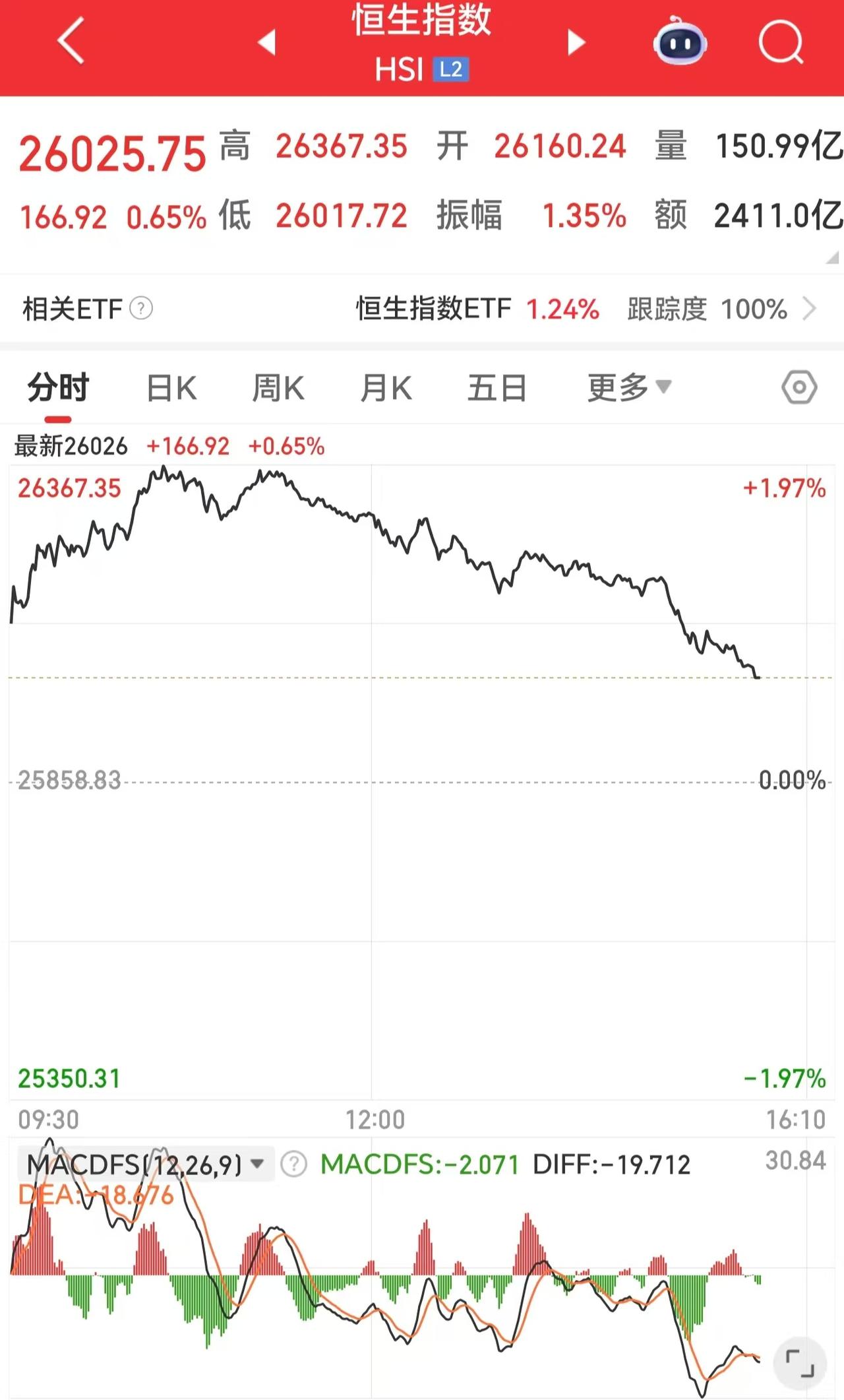 完犊子!港股午后止不住的螺旋式下降,明天的A股不会得低开了吧? 今天A股又是普