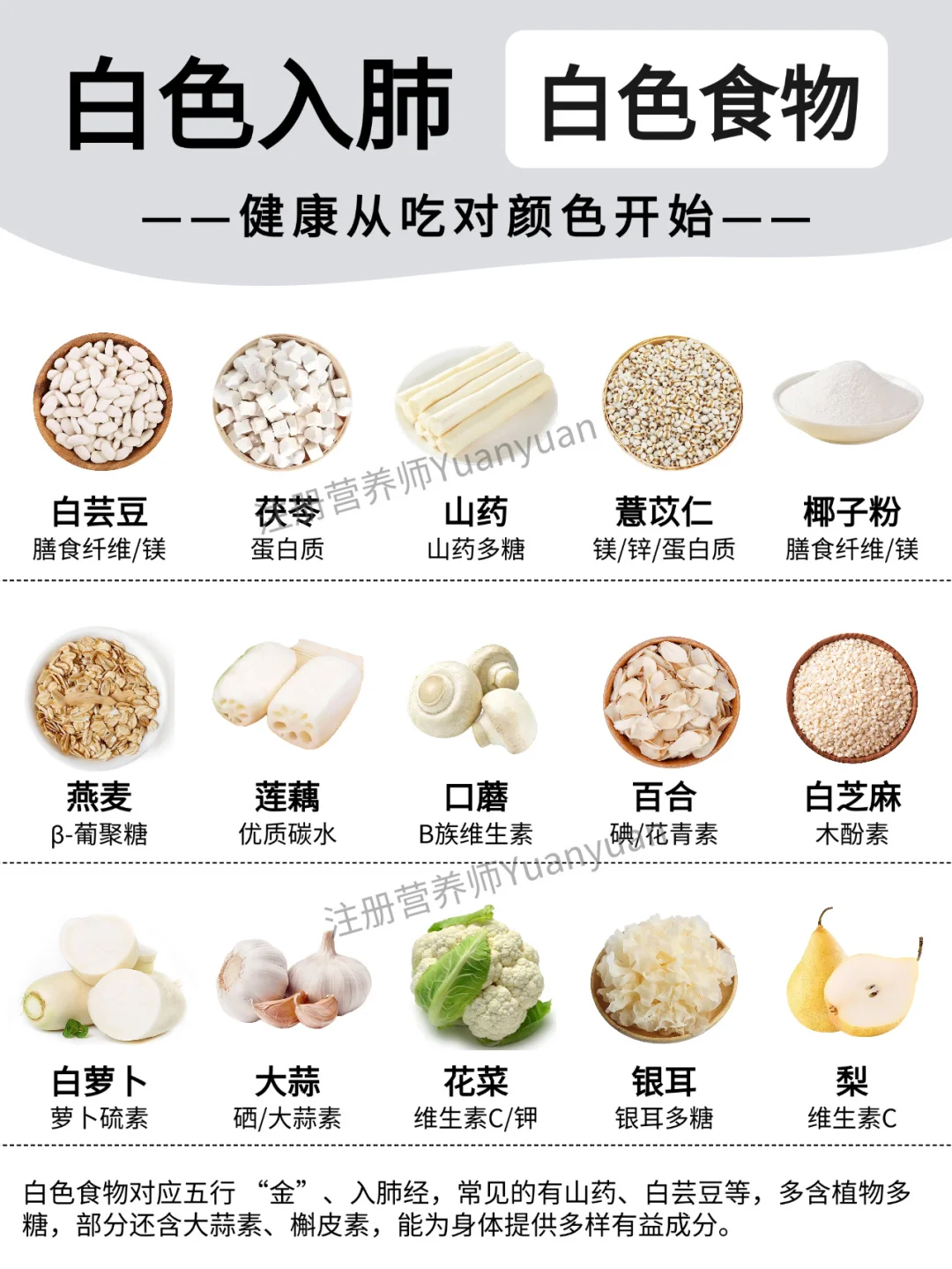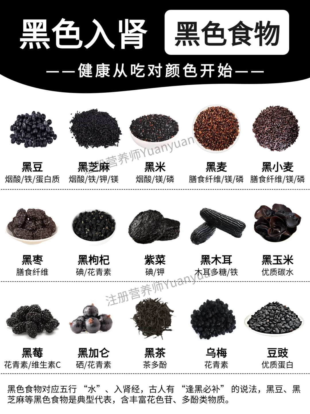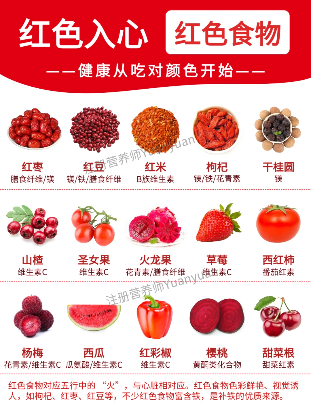 ✍️说白了就是要让餐盘里的食物色彩丰富,营养均衡了,五脏舒服了,身体自然就舒坦了~常见的五色食物和营养见图1-5,平时可以多安排