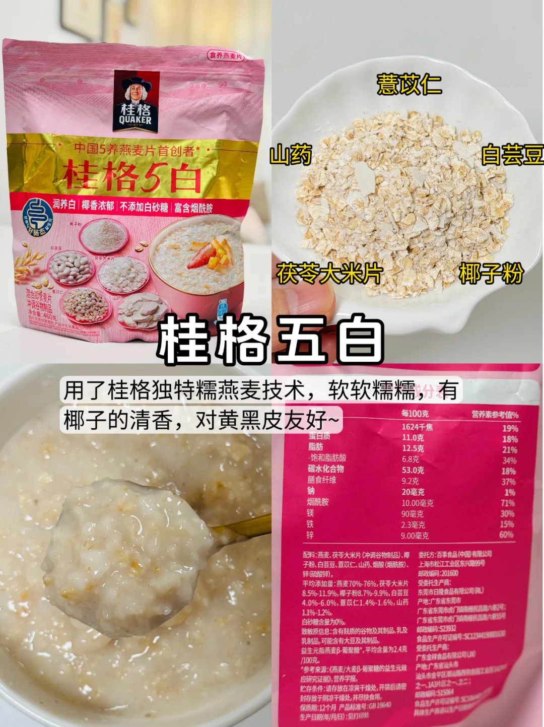 ⚪桂格五白:爱美款,对黄黑皮友好,食补润养白