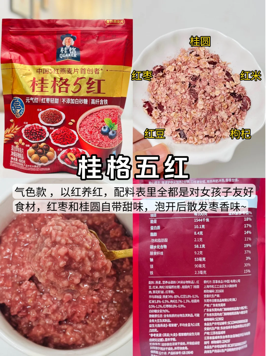 🔴桂格五红:气色款 ,配料表里全都是对女孩子很友好的食材