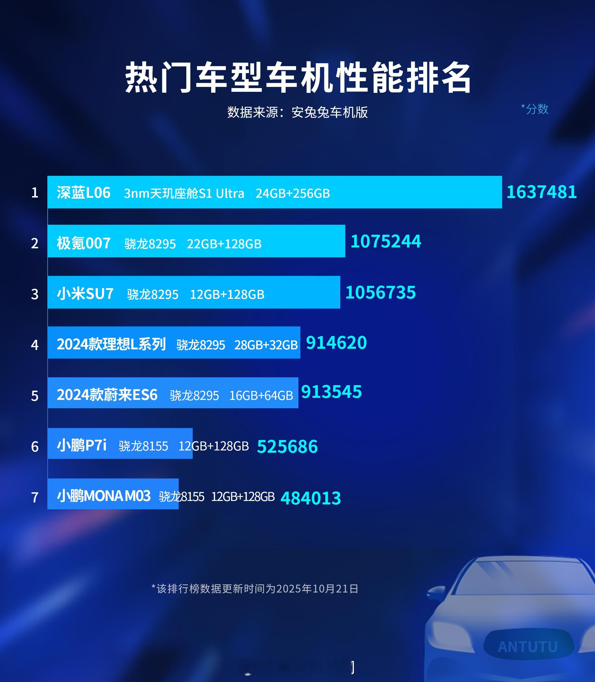 安兔兔认证,深蓝L06搭载的天玑座舱S1 Ultra(3nm车规级芯片),