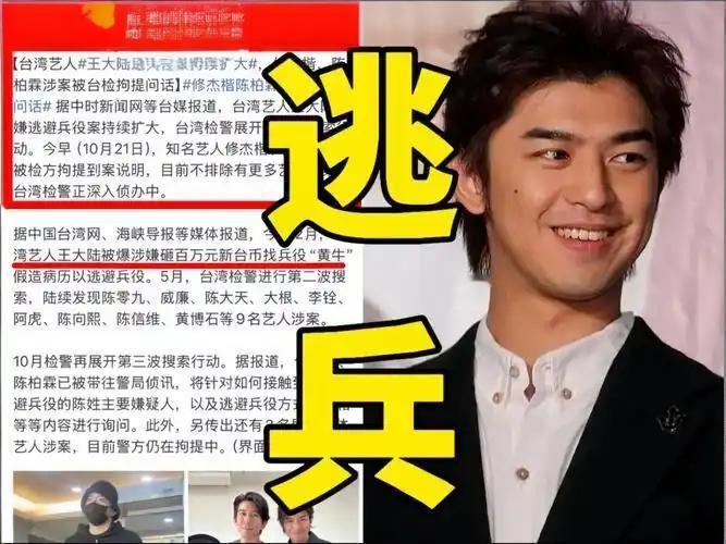 2025年10月21日,台湾艺人陈柏霖、修杰楷因涉嫌逃兵役被警方拘提。陈柏霖承认曾花10万元伪造“高血压”病历逃避兵役,称“早有心理准备”;修杰楷亦承认试图通过作假免役,但因失误仅服替代役5个月后提前退役。案件仍在调查中。陈柏霖 修杰楷 林楷杰 陈柏俊