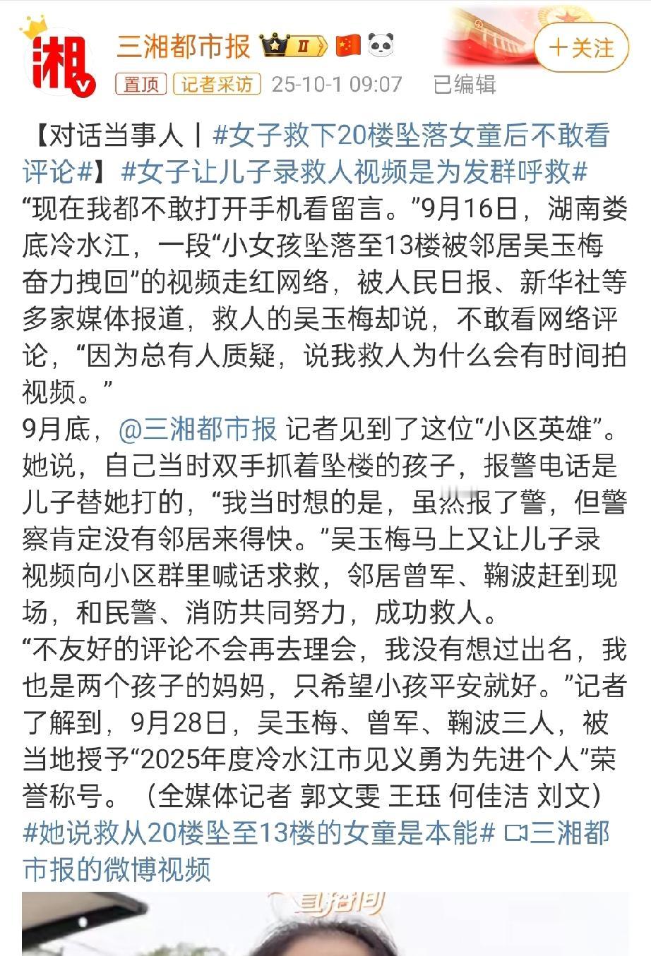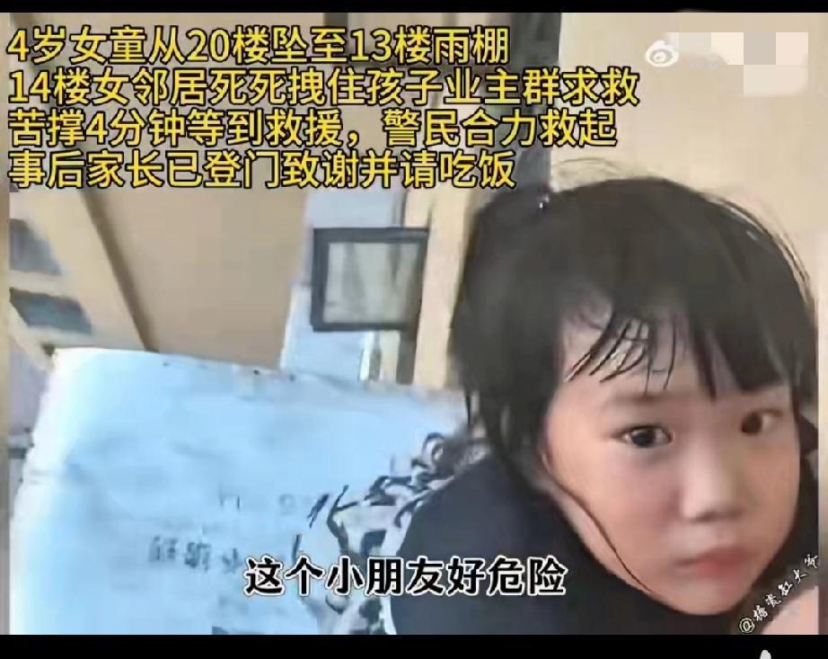 🔺惊险!女童从20楼坠入13楼窗台,女子发现后紧抓不放大声呼救。 🔺当事人称不敢看评论:因为总有人质疑,说我救人为什么会有时间拍视频。 🔺网友愤怒:救人的手在抓生命,敲键盘的手在造粪坑。坠楼故事 小女孩坠楼 坠楼少女 救人一命,会有福报吗?