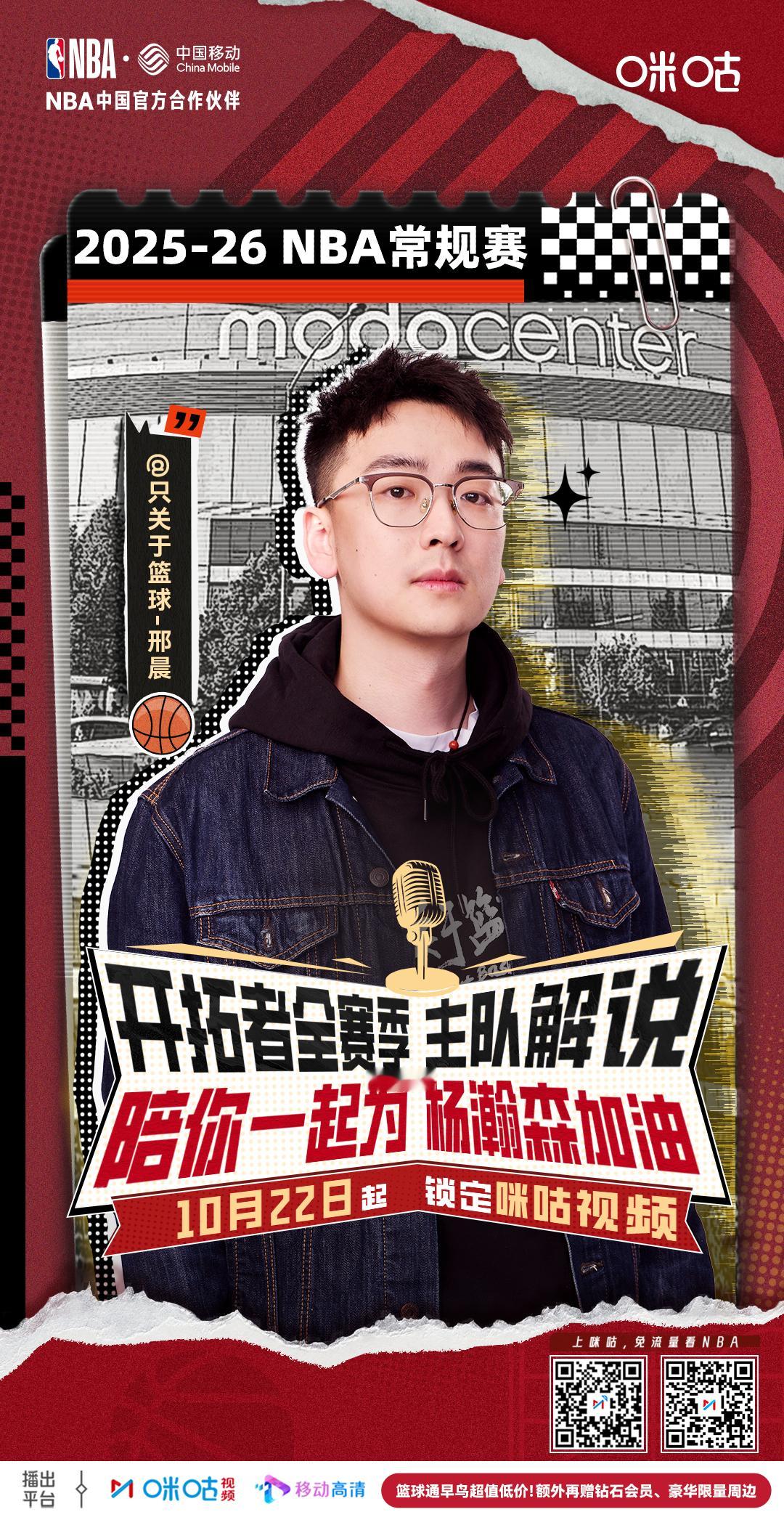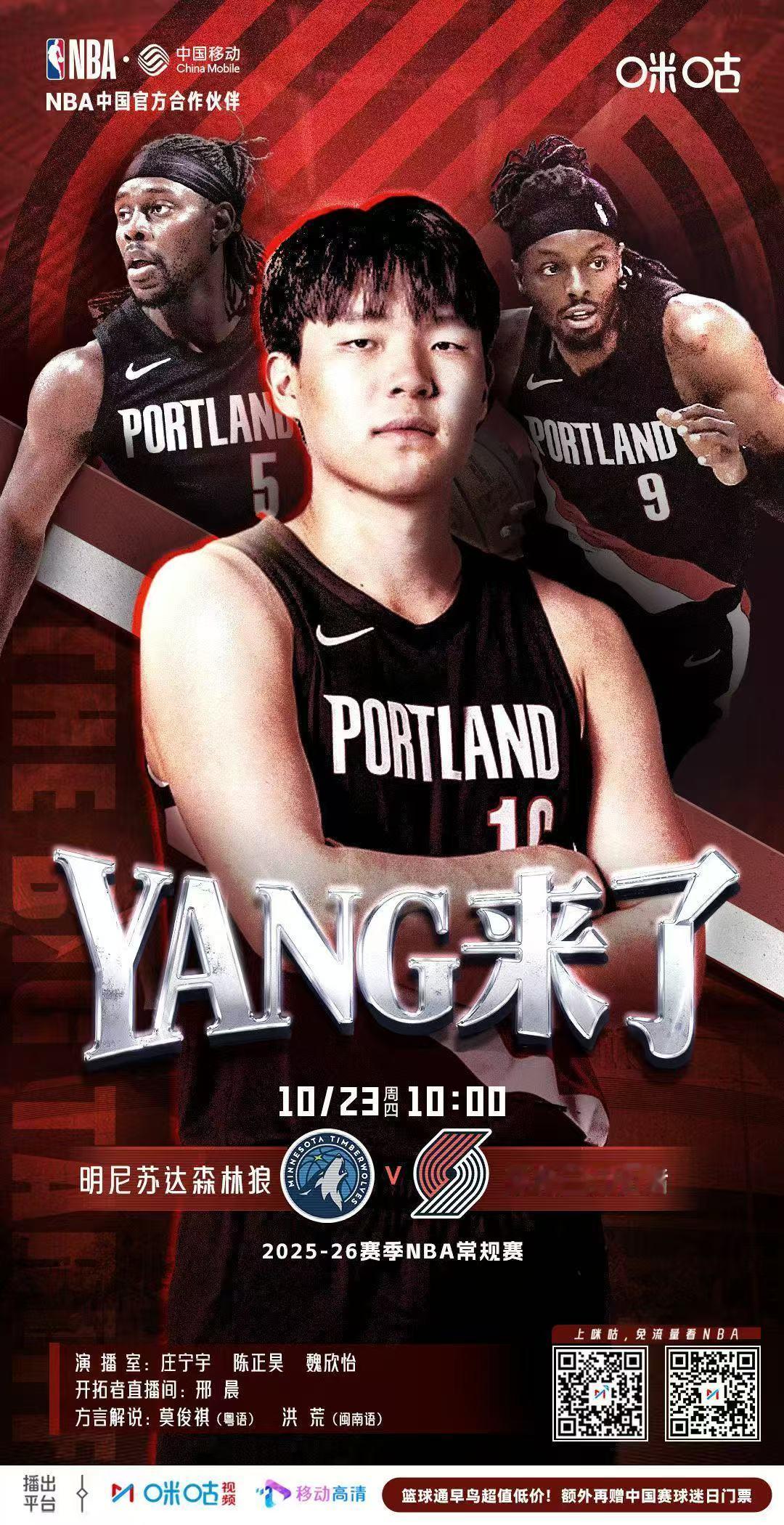 宣布一个事:非常荣幸接到这个工作,成为咪咕开拓者球队解说!!!咪咕唯一海报,不知