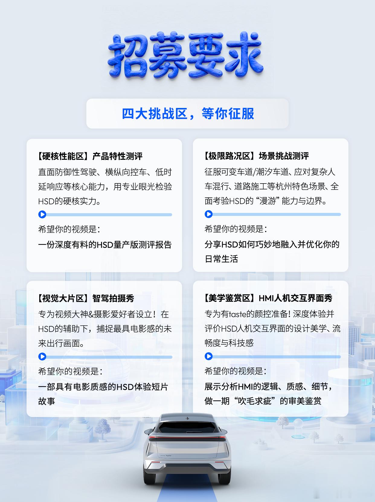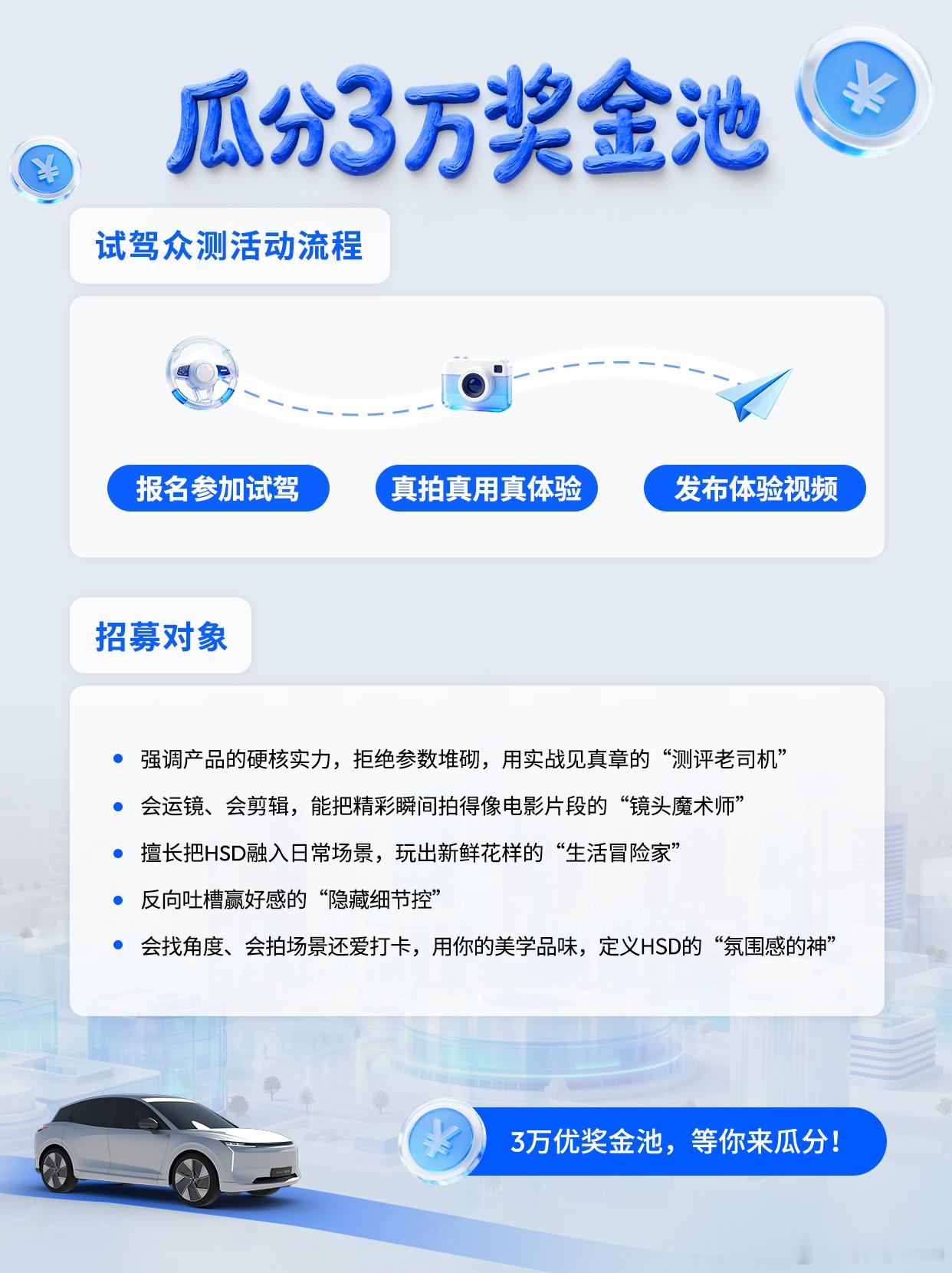 你们一直期盼的地平线 HSD 量产版本体验共创活动,即将在杭州拉开帷幕,这次在影总大本营杭州联手招募智驾发烧友,深度体验,认真分享,产出一份好的体验内容。就有机会瓜分三万奖金!