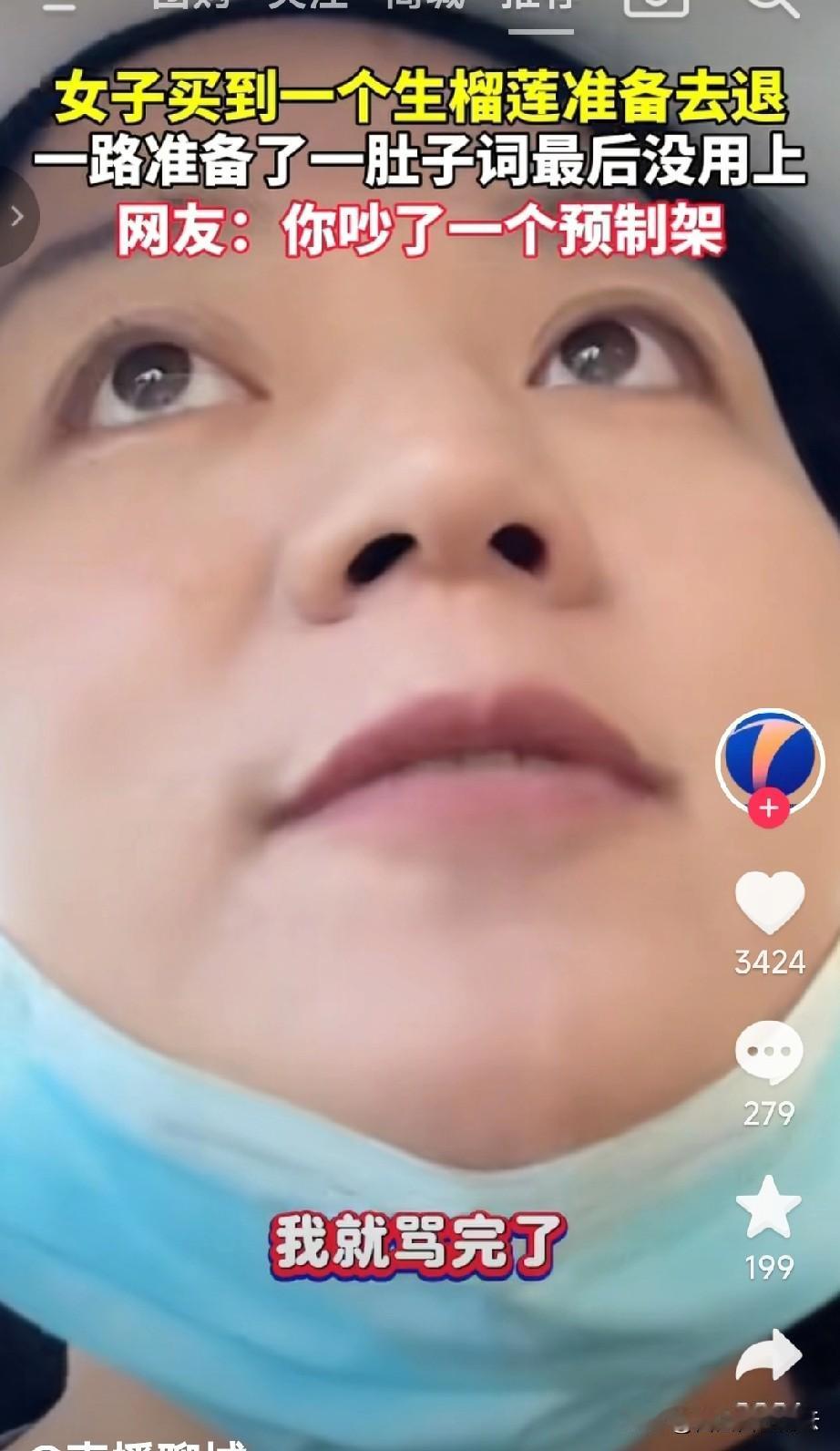 自我内耗的人看看,太真实了。 女子在店里买了个榴莲,商家说保熟。女子拿回家一开,没熟。 女子拿着榴莲回去找老板,她觉得她有理,榴莲必须得给她退。可是她怕老板耍赖,就决定提前先练练词。 她排练的是,自己要拿出气势,到店里就说,我在你店里买的榴莲不熟,你给不给我退?不退的话我就坐在你门口不走了,让你一个东西也卖不出去。 女子鼓足勇气来到店里,结果一看老板又怂了,第一句话成了“你好,你看这个榴莲不熟。”气势上明显比练习的时候弱了不少。 老板拿过去榴莲后,女子还在想词,老板说“你扫码吧。” 女子一听,这是要给我退了。这么简单,演练的话是一句没用上,赶紧说了句谢谢。 网友看完后笑喷了,怎么你这是吵了个预支架吗? 还有网友说老实人碰到老实人了。 其实有事时就解决事情,不用内耗自己,有些事没我们想象中那么棘手。世界上也是好人多。 对于这件事,你怎么看呢?