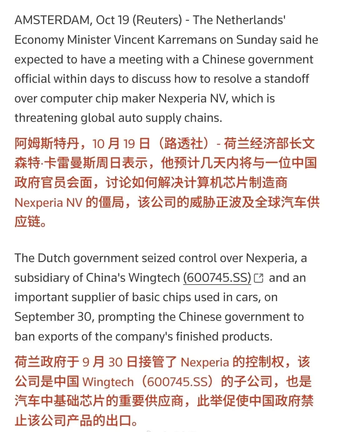 荷兰经济部长称:中国方面误以为荷兰与美国在安世半导体问题上联手。 哦,搞了半天,荷兰是自愿的 有网友评论: 1,主要在德国生产,中国只是包装,荷兰着急个啥啊 2,首先要公开认错,其次对企业受到的损失进行国家赔偿,然后才能往下谈。 3,这背后争夺的是新能源汽车的产业链,安世半导体是新能源汽车用芯片的重要生产商, 晒图笔记大赛