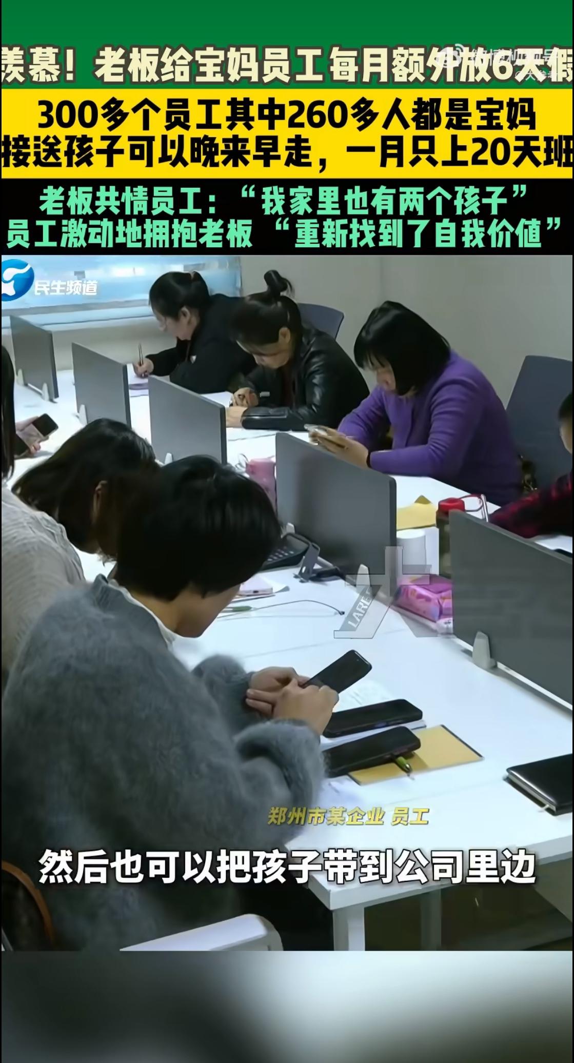 前几天刷到个新闻,心都亮了。一位宝妈为了兼顾孩子和工作,跟公司商量每天晚来早走,一天只上20小时班,结果月薪照样拿5万。不是她后台硬,是能力强、态度好,公司觉得“值这个价”。她可能刚想“总得选一个”,结果两个都拿下了。这不是“开挂”,是“把选择权,握在了自己手里”。 说实话,这哪是“公司大方”,是“把人当成了可以信任的伙伴”。多少职场妈妈,一说要带孩子,就被当成“不稳定”“不敬业”?你不是没想过“得平衡家庭和工作”,是怕“说了,显得我太矫情”。你把“宝妈”当成了“只能二选一”的角色,可人不是机器,不该被硬生生掰成两半。那个妈妈,可能已经熬了无数个夜,就为陪孩子睡,第二天照样精神抖擞上班。这不是“特殊照顾”,是“能力配得上信任”。 最让人心疼的是,这种“被逼选择”不是个例。多少女性,一怀孕就被暗示“该回家了”?多少人,为了孩子辞职,最后想回来却发现岗位没了?你不是没听过“职场歧视”的新闻,是觉得“不会这么近”。可近就在这儿:你一犹豫,机会就没了。那个妈妈,可能已经做好了“告别职场”的准备,结果公司说:“你来,我们等你。”这不是“幸运”,是“把价值,当成了真正的标准”。 更扎心的是,我们总在等“下次”。等“下次我多努力点”,等“下次别这么难”。可人生没有“下次”,只有“这一次”。那个公司,可能已经看透了:真正靠谱的人,不是坐满八小时,而是把事做好。你不是没想过“得支持宝妈”,是怕“说了,就显得我太理想化”。可真正的职场,不是“谁坐得久”,是“谁把事办成了”。 来评论区说说吧。你身边有宝妈为了孩子辞职的吗?或者你觉得,公司该不该给宝妈灵活上班的机会?也许你的一句“我同事也这样,现在成了骨干”,就能让另一个在“辞职边缘”的妈妈多一分勇气。别让“只能选一个”成了“永远的遗憾”。真正的支持,不是“让她回来”,是“从一开始就不让她走”。 说到底,妈妈不是职场的负担,而是最懂责任的人。一个愿意为孩子争取时间的人,往往也最懂得珍惜工作。我们不该只羡慕“她运气好”,而该问:为什么大多数公司,还是把“坐班”当铁律?你心里有公平,才敢说“我来改”。改变不是等来的,是主动说“我们可以不一样”。 (案例来源:大参考)