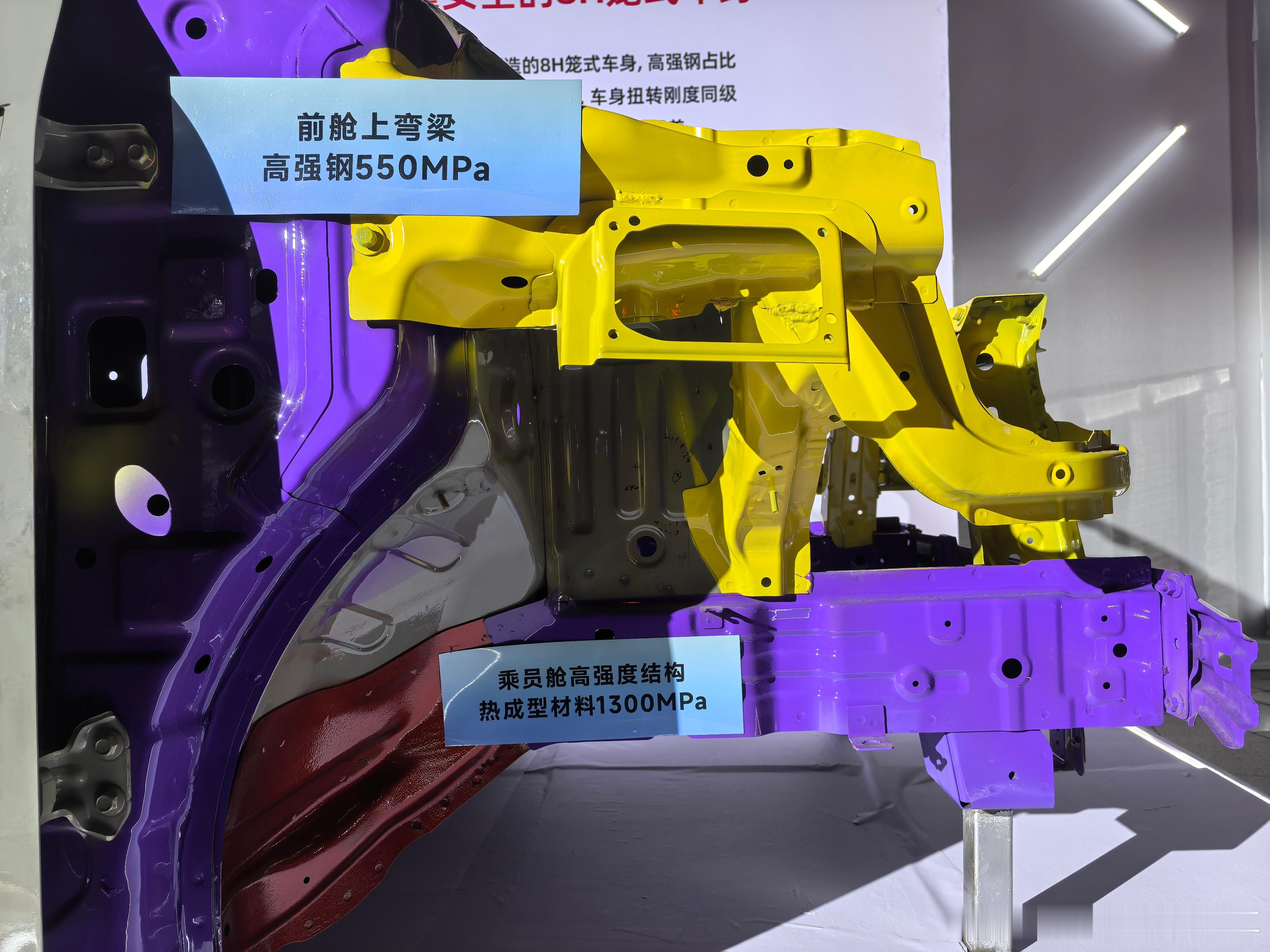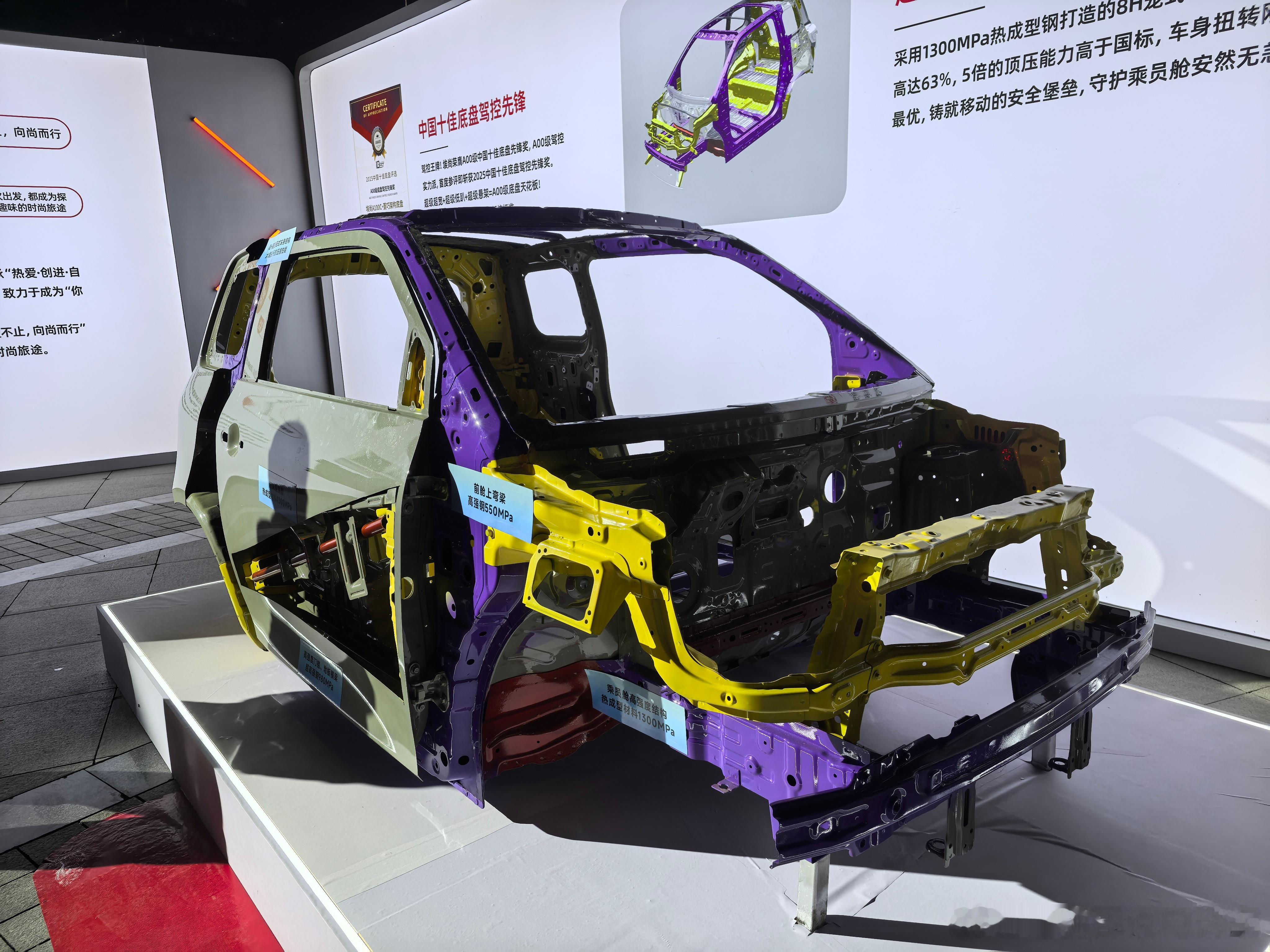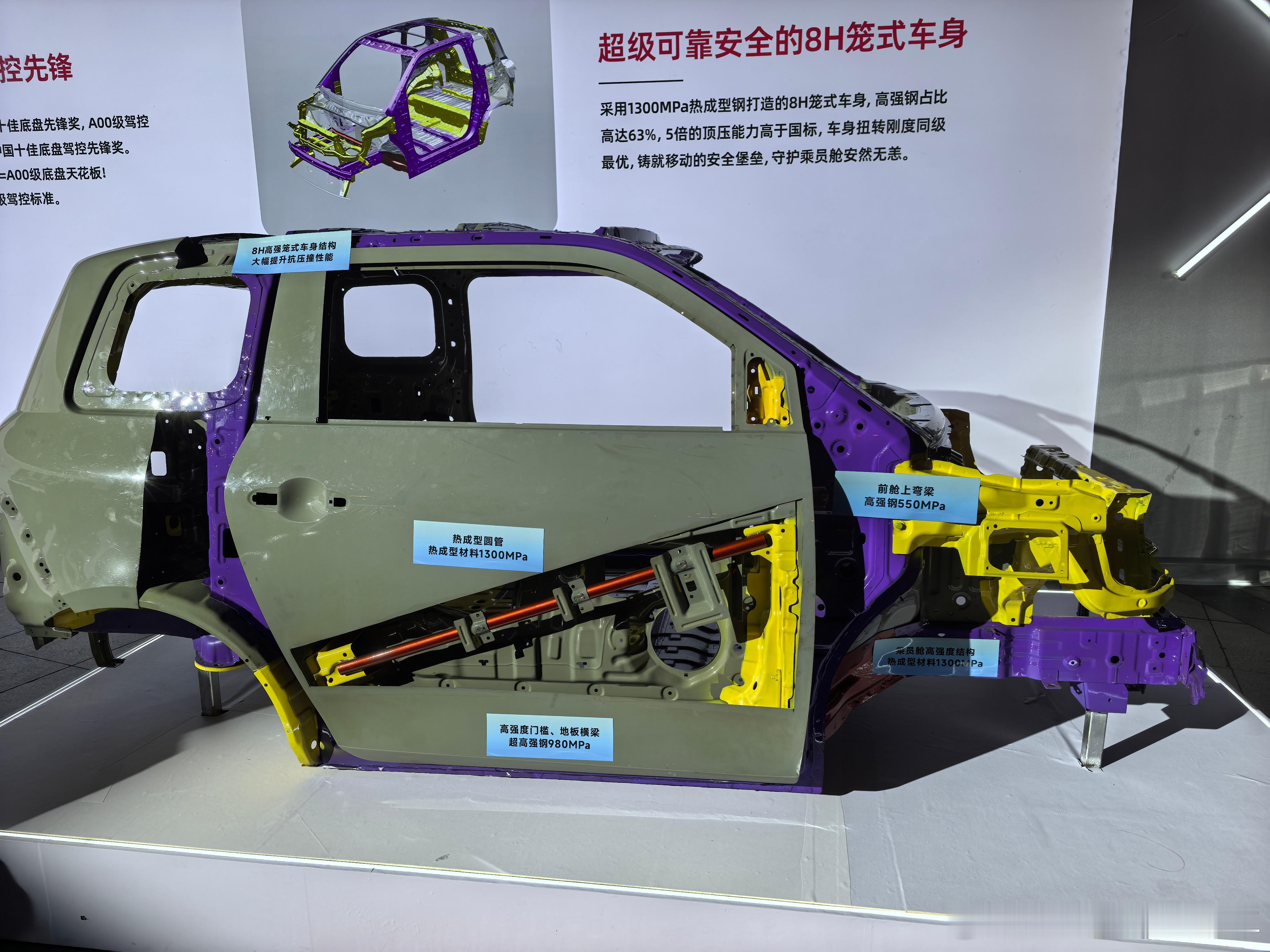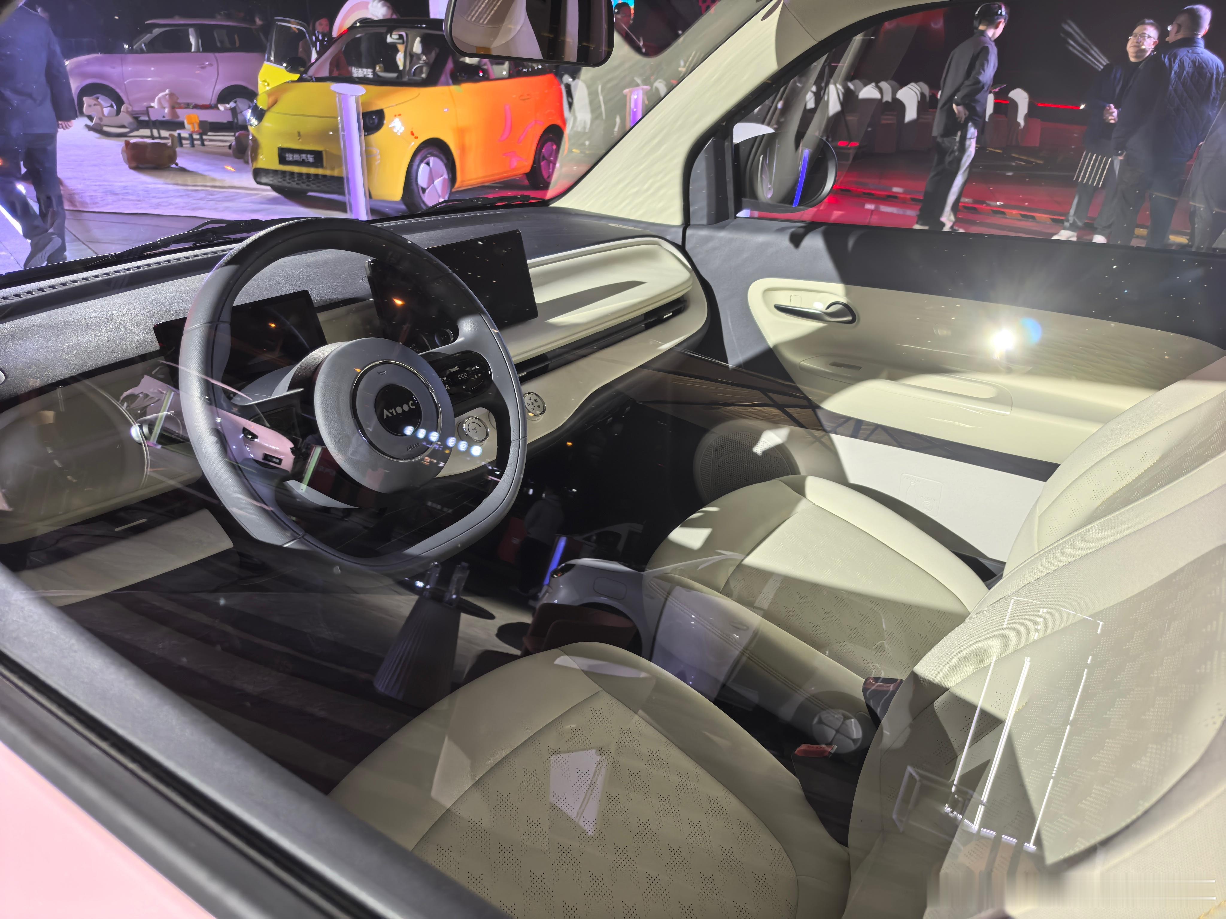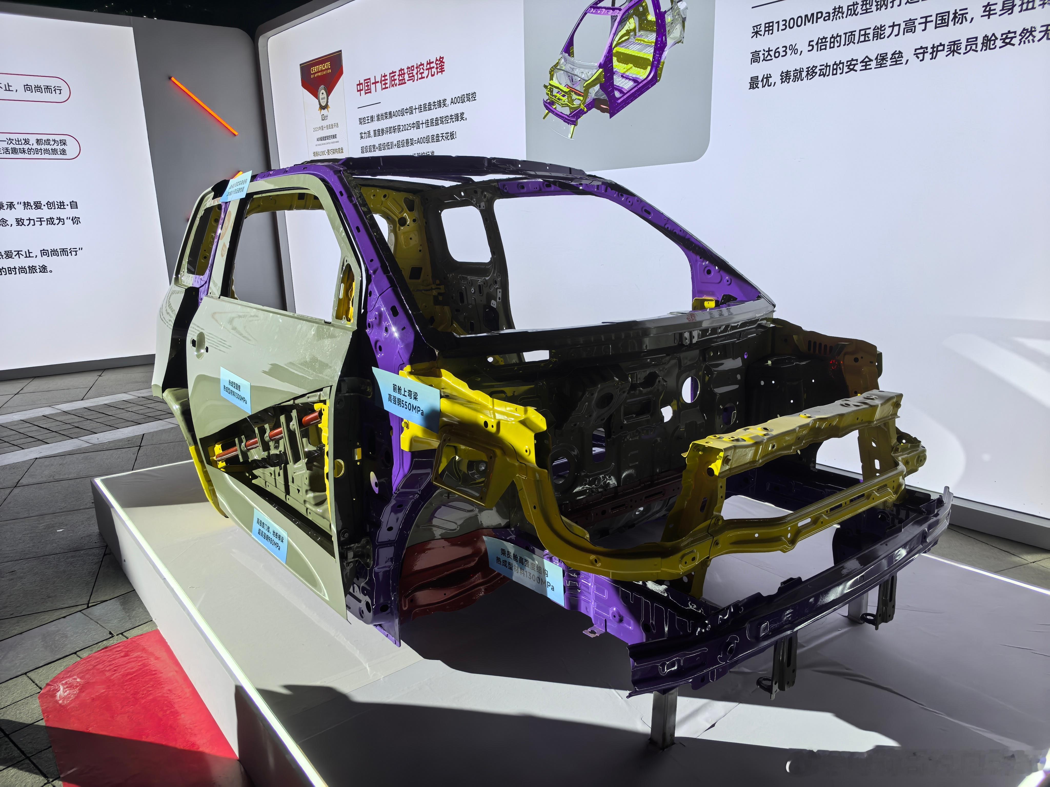五菱推出的电动汽车新品牌:埃尚。体型跟宏光mini差不多,两个门4个座。看了好几圈,车身骨架的高强度钢用得还不少。