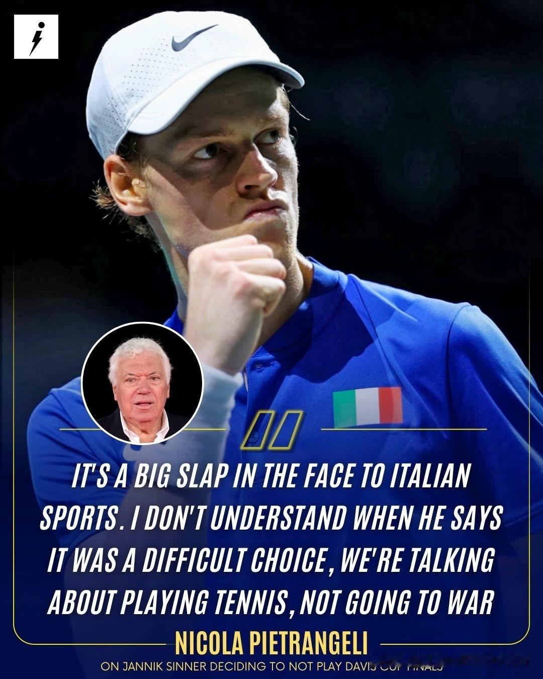 尼古拉·皮特兰杰利显然对扬尼克·辛纳决定缺席今年的戴维斯杯决赛感到不满。 他说