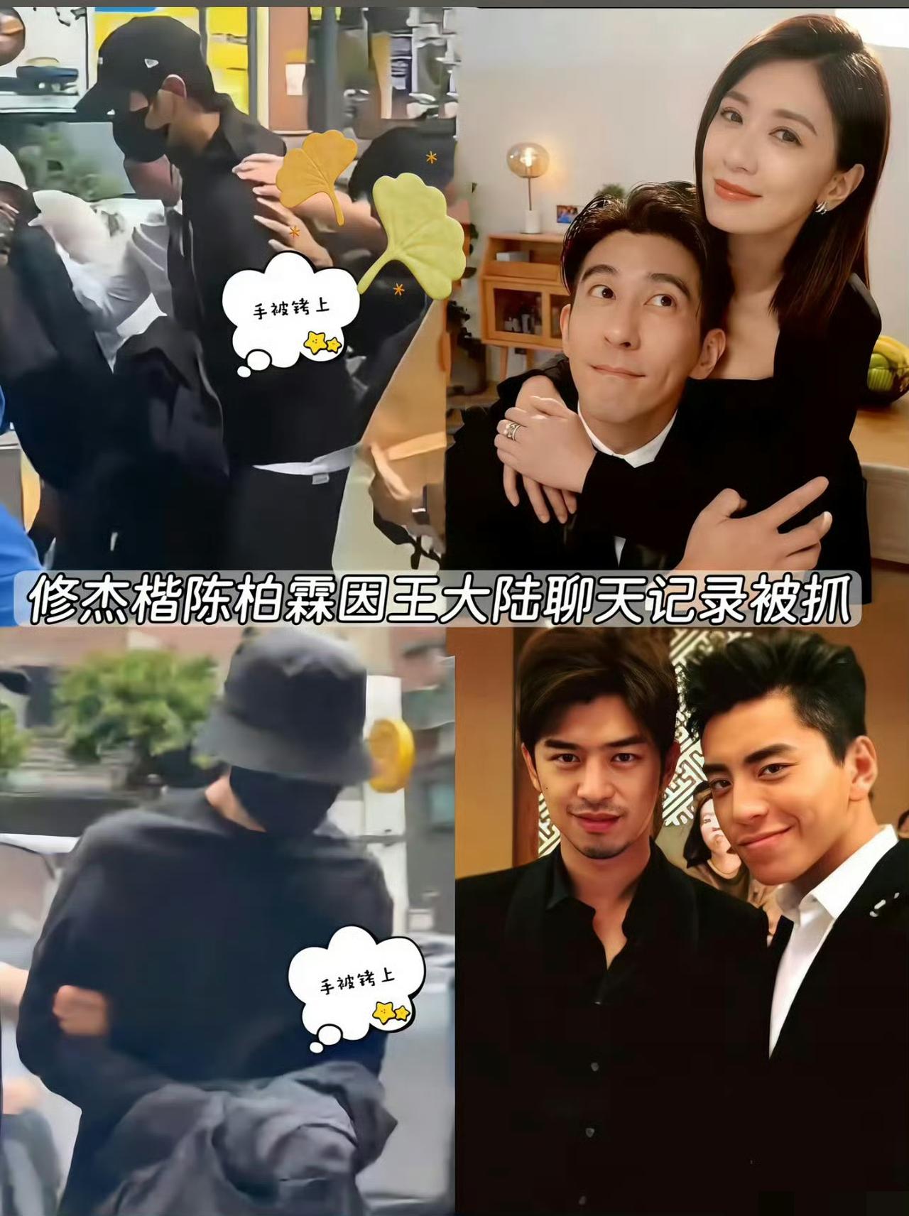 想了半天, 终于从陈柏霖修杰楷身上, 发现一个秘密,那就是再好的兄弟情,也扛不住逃兵役的牵连。 今天早上七点,台北几个高档小区突然冲进十组警力,陈柏霖穿居家服,修杰楷裹黑衣,两人帽子口罩捂得严实,手腕刻意用衣服盖住,明眼人都知道,那是被拷押上警车了。 说是被王大陆逃兵役案牵连,今年二月王大陆找黄牛造假,五月揪出九个艺人,今天第三波直接烧到他俩。 陈柏霖修杰楷都认罪交了五十万保释,修杰楷被抓时家里孩子受惊吓,老婆贾静雯还在大陆拍戏,应该也担惊受怕的。 你说这兄弟一场,怎么就跟着踩了这么大的坑,应该台湾艺人里逃服兵役的不止这些人吧。