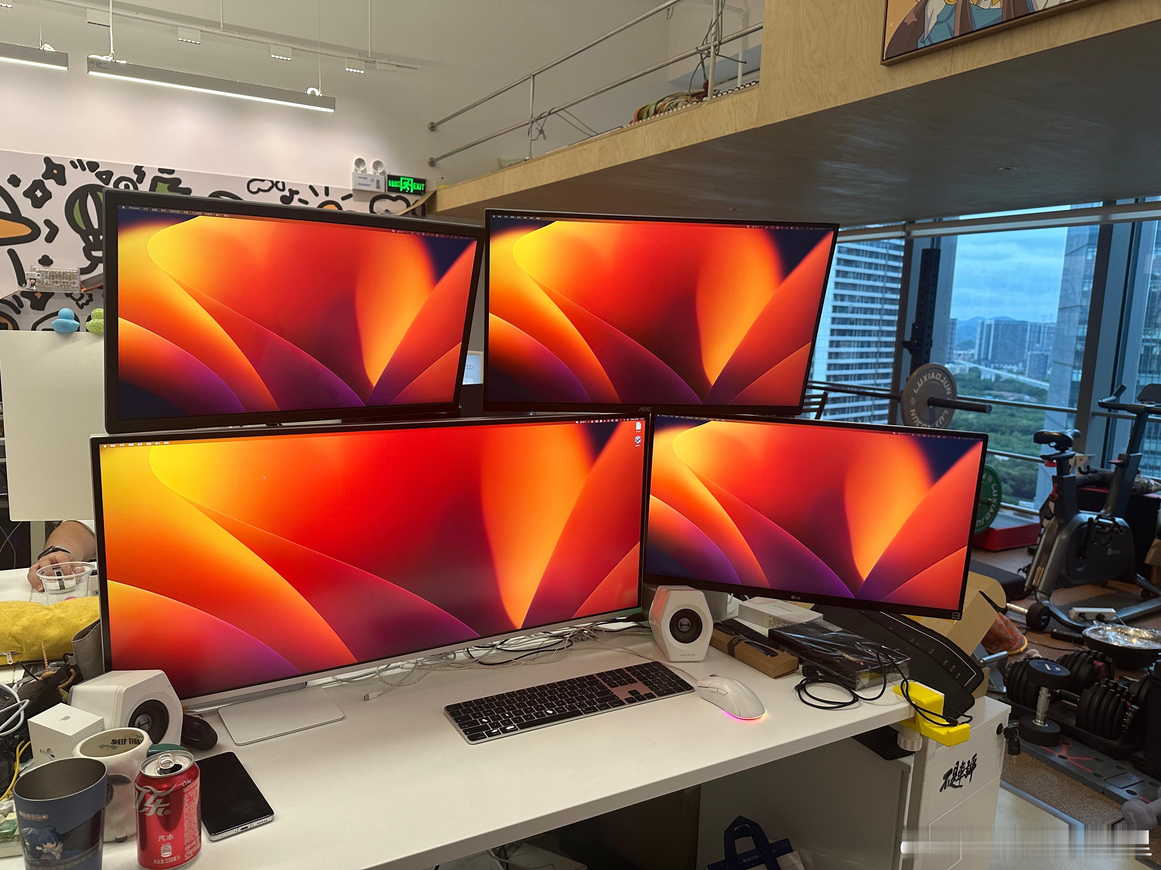 好家伙,小伙伴在工位上装了4个显示屏,可以拿来当监控中心了[柯基]