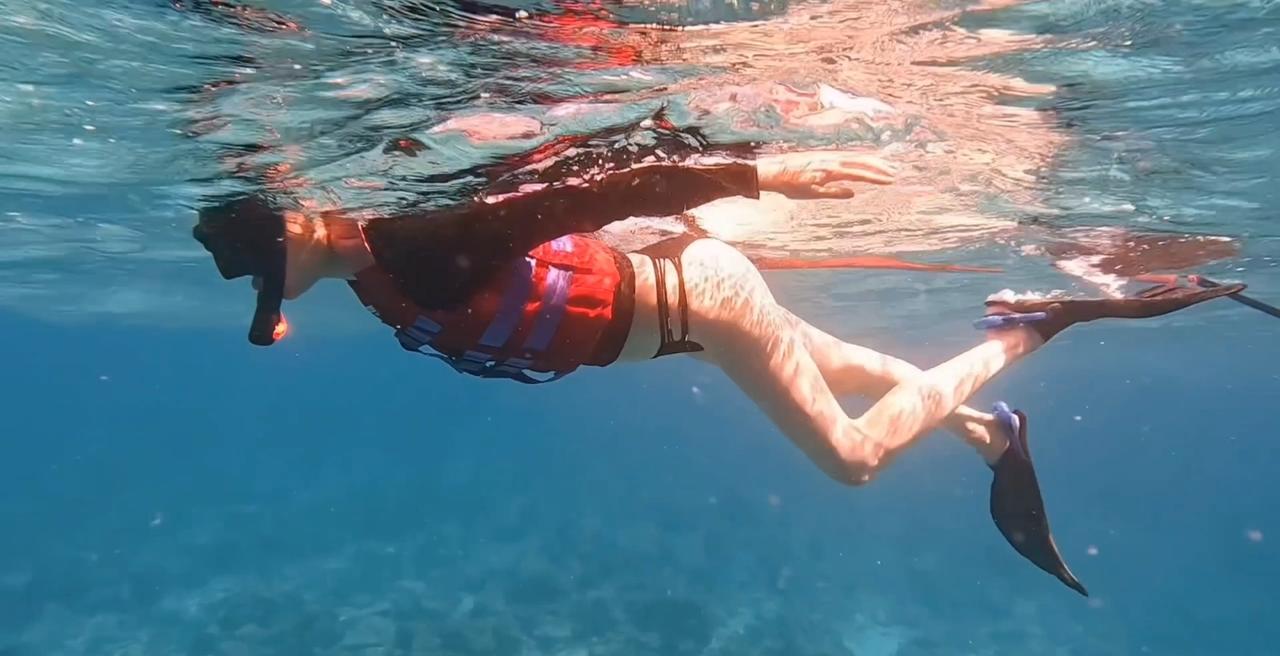 最近关晓彤在马尔代夫浮潜的视频真的刷屏了。 她穿着蓝白泳衣,在水里腿显得特别长