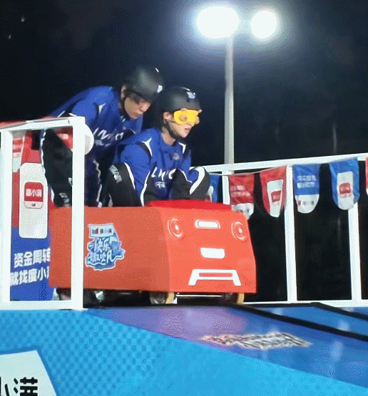 恩利玩游戏“过山车”时,秦昊温柔给他戴上眼罩,仔细调整位置,生怕影响到恩利的颜值。