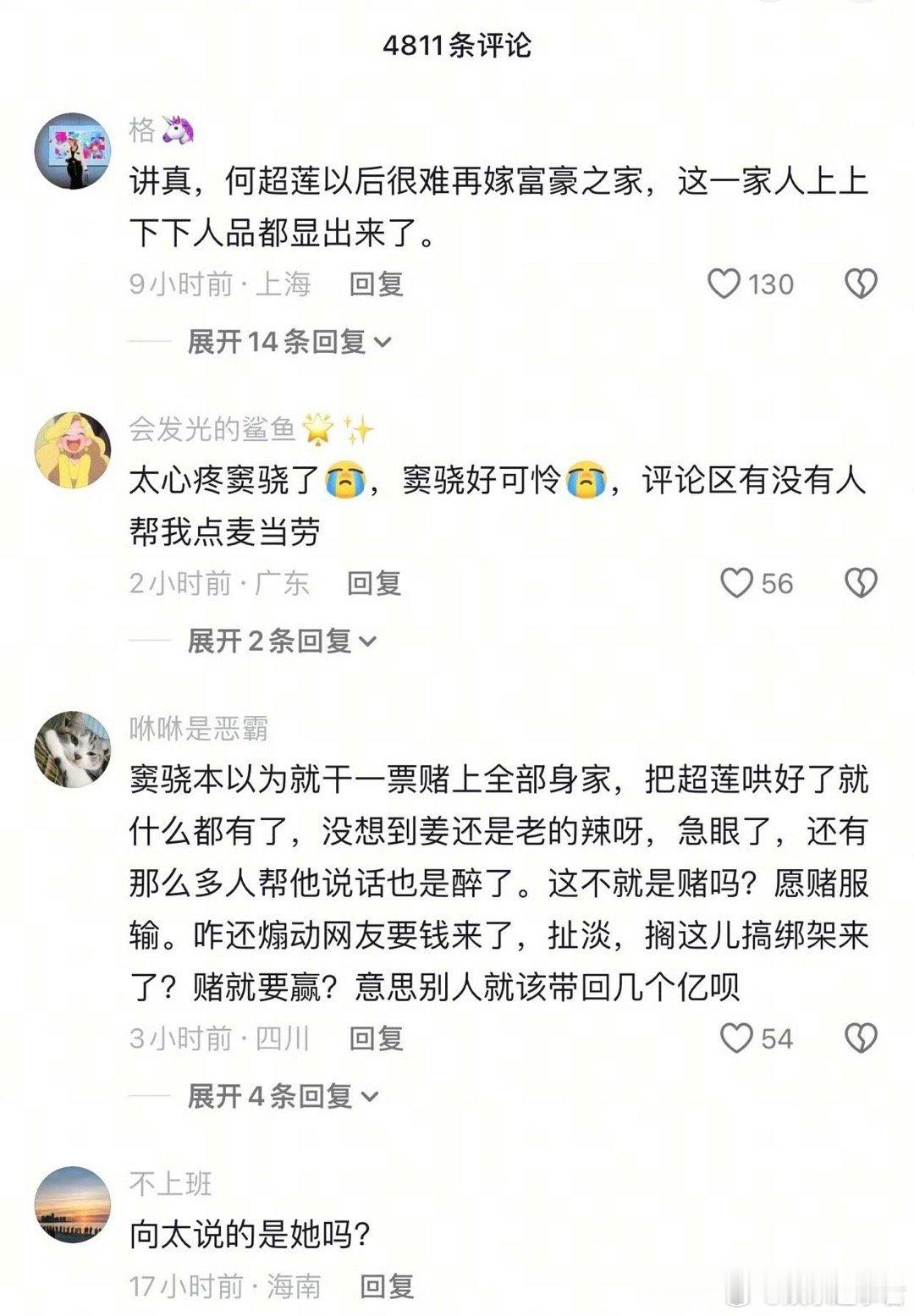 何超莲评论区何超莲评论区被网友围攻了,都在替窦骁打抱不平,